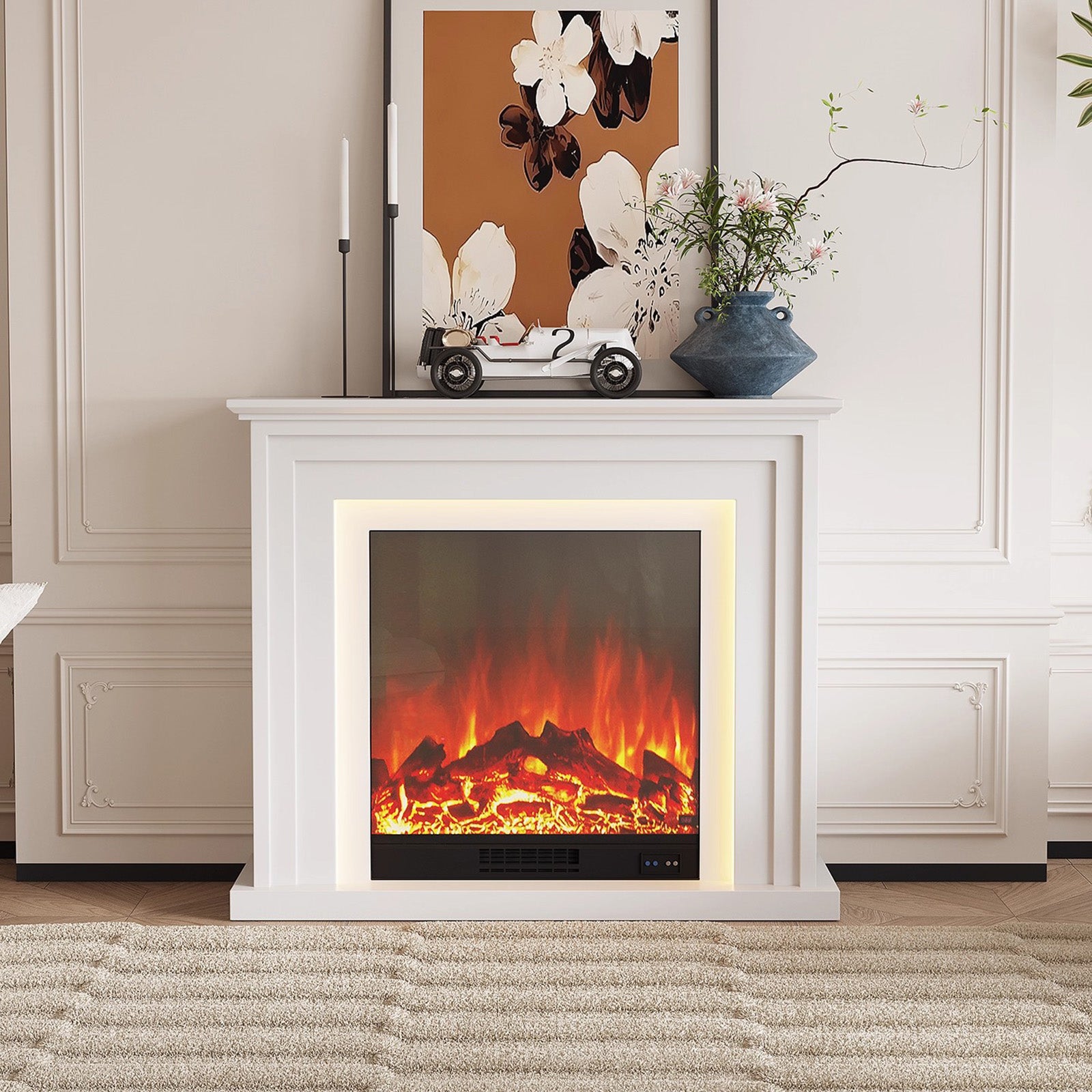 Aihm-Lon Electric Fireplace Heater with White Frame Realistic Flame 43.31"-59.05"