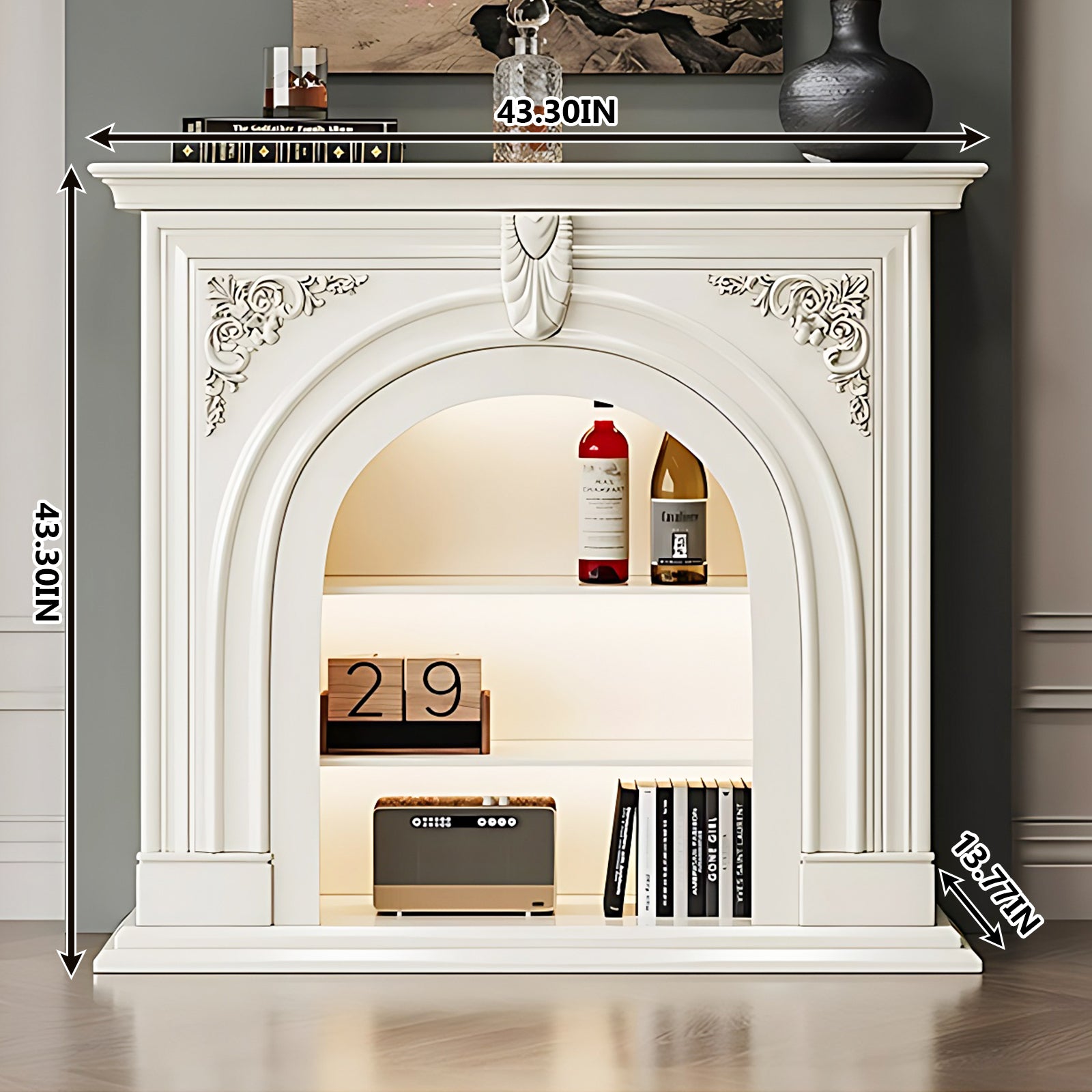 Aihm-Lon White Decorative Fireplace with Cabinets 39.37"-59.05"