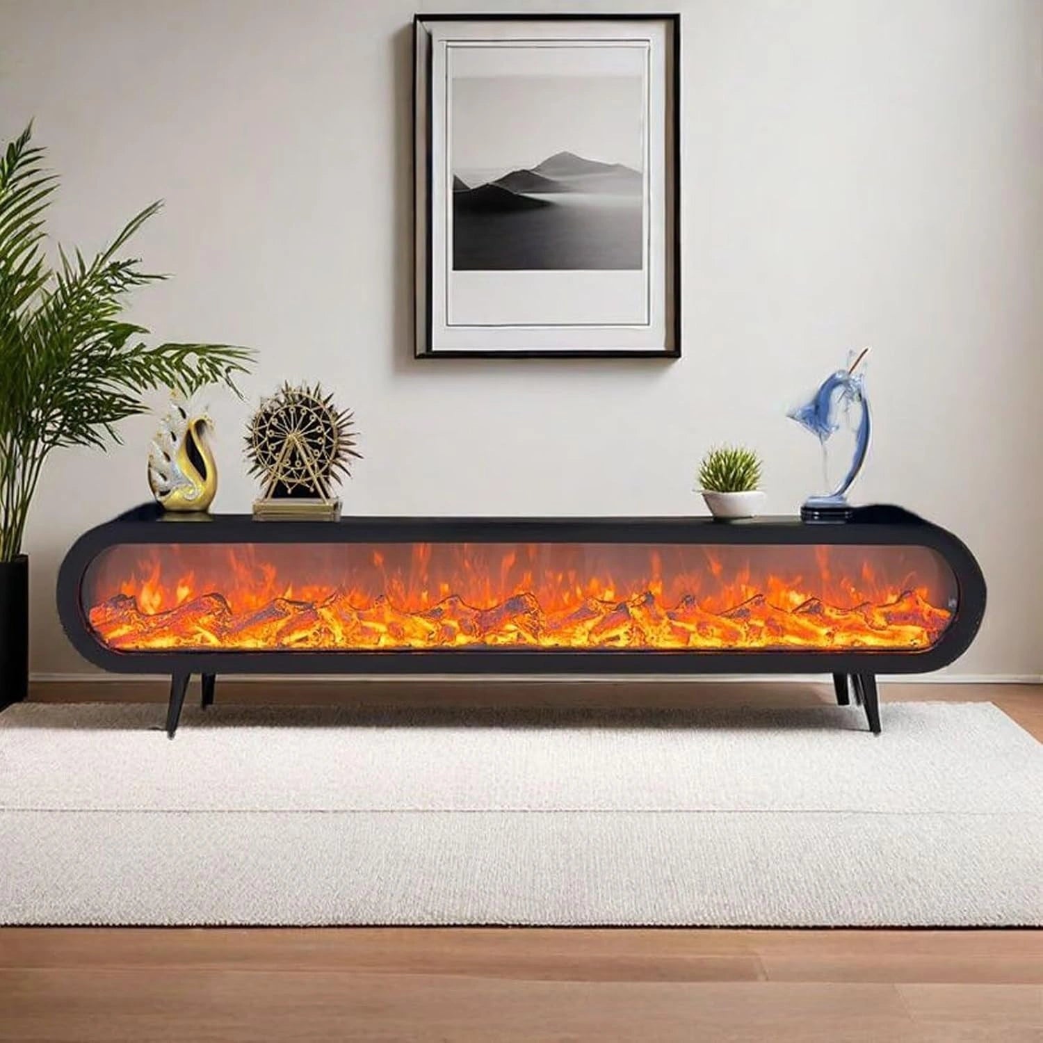 Sleek Contemporary Design: Features a slender, tall profile with transparent flame-view panels that incorporates modern minimalism to enhance the look of any indoor space 3D Realistic Flame...