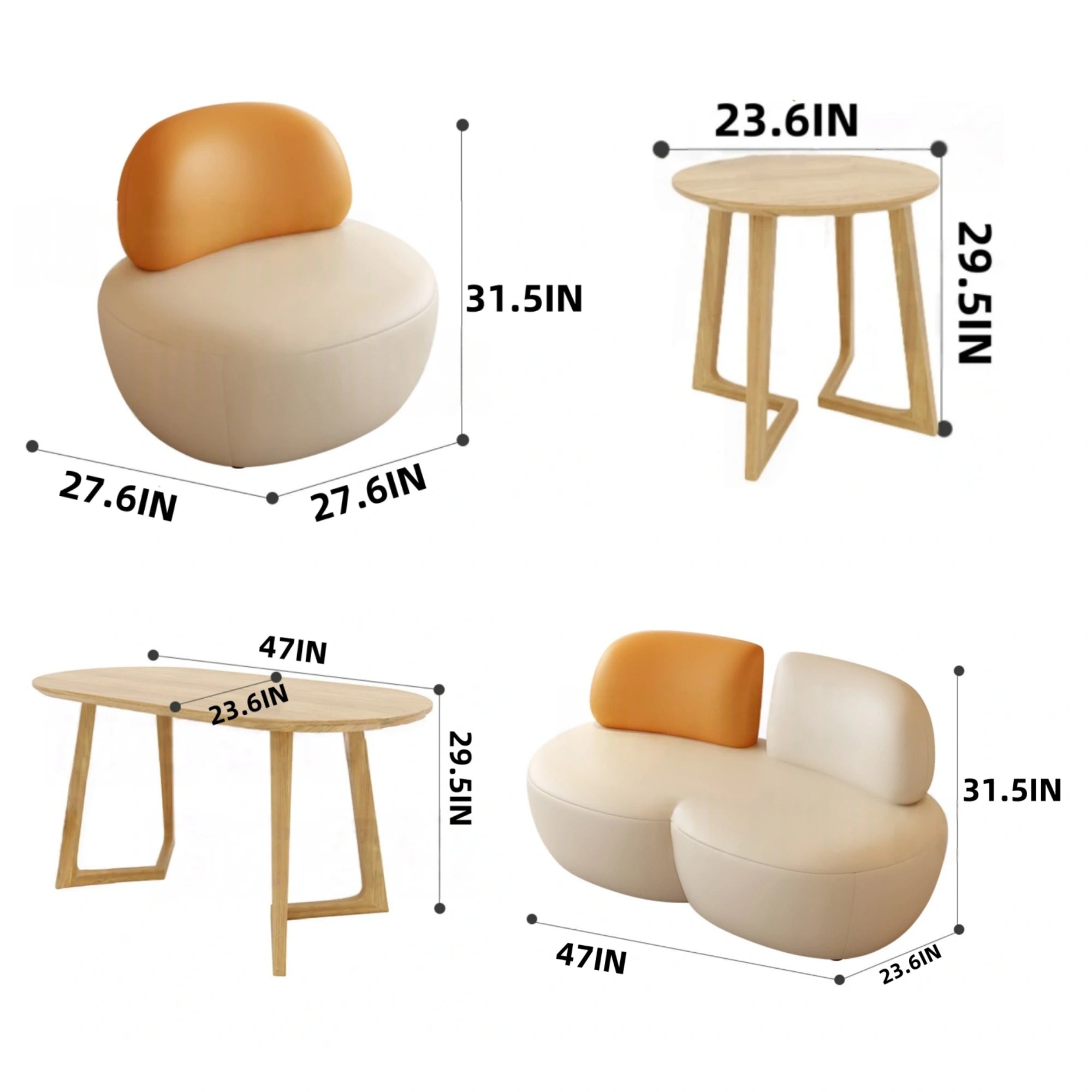 Aihm-Lon Commercial Sofa Set with Table for Dessert Cafe Lounge Areas 27.6"-47”