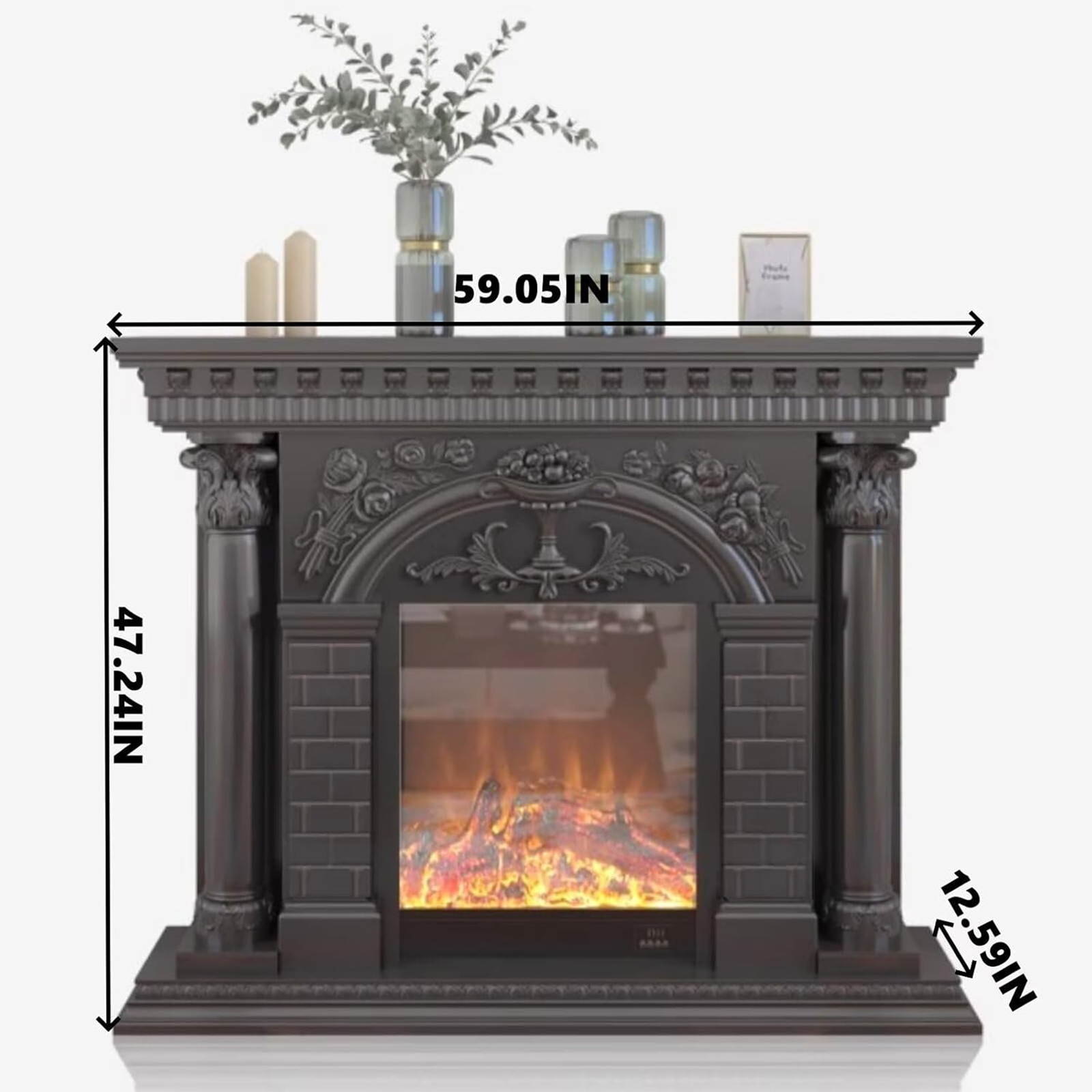 Aihm-Lon Brown Electric Fireplace with Decorative Flame 59"-79"