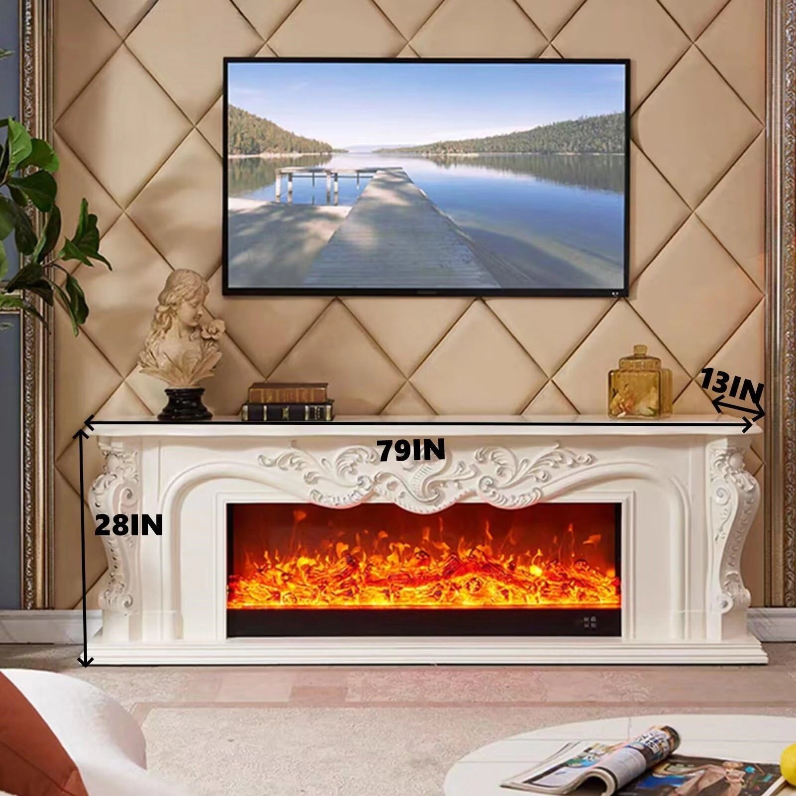 Aihm-Lon White Electric Fireplace with Decorative Flame 59"-79"