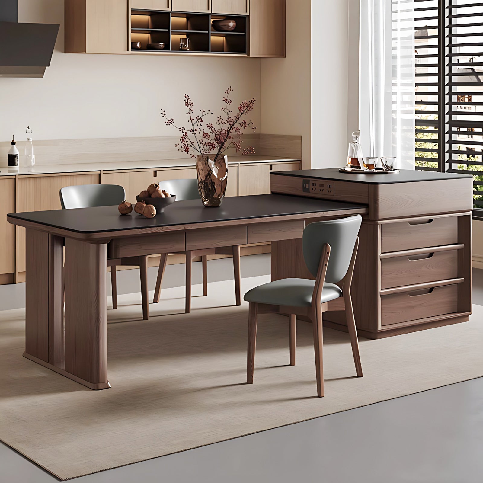Modern Luxury Style: the island and the tabletop are designed as one piece, the dark wood grain is low-key and elegant, and the handles, table legs...