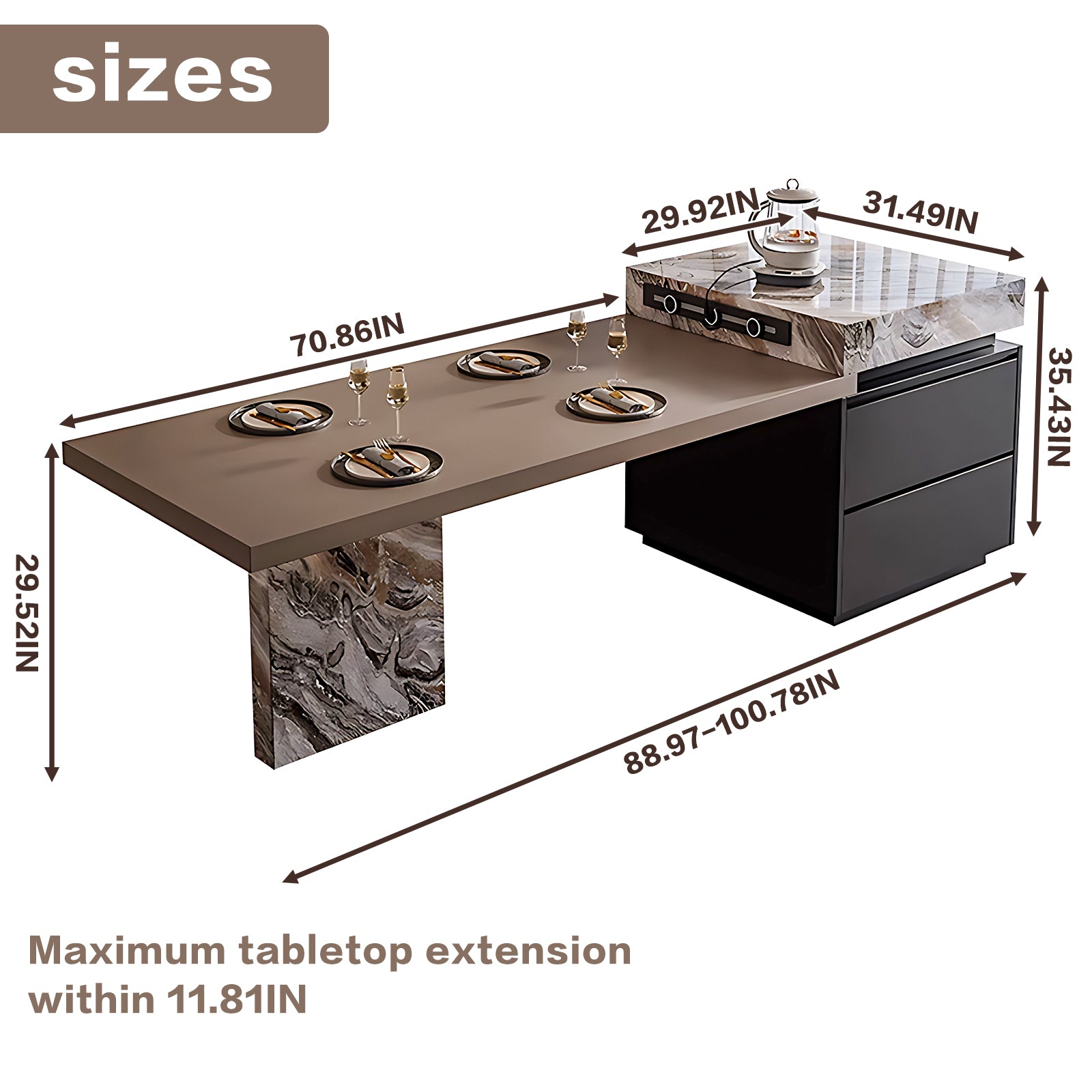 Aihm-Lon Kitchen Island with Extendable Table Pull-Out Cabinets 81.1"-104.72"