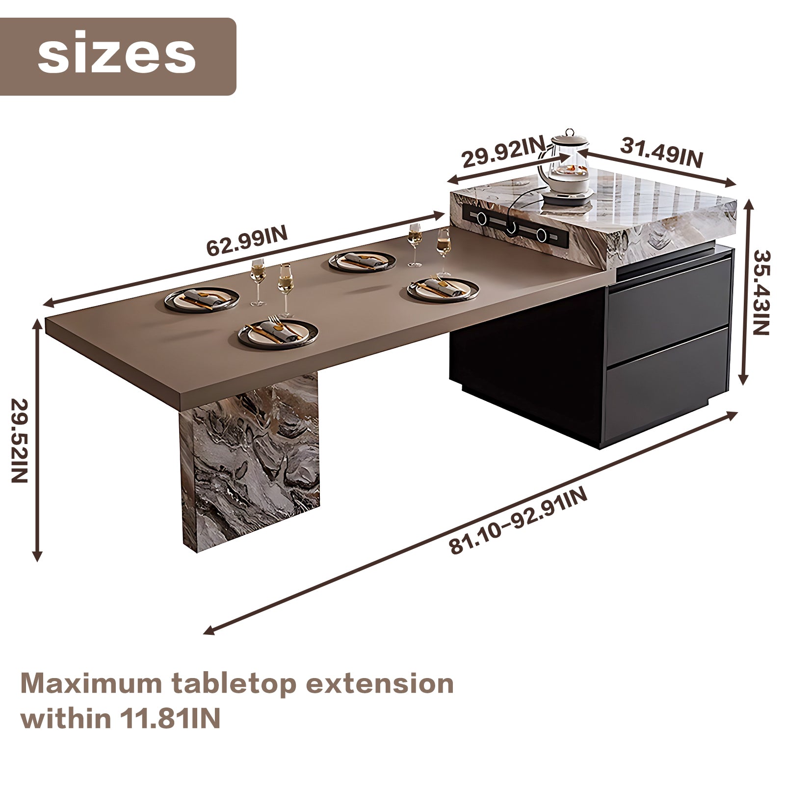 Aihm-Lon Kitchen Island with Extendable Table Unique Countertop 81.1"-100.78"