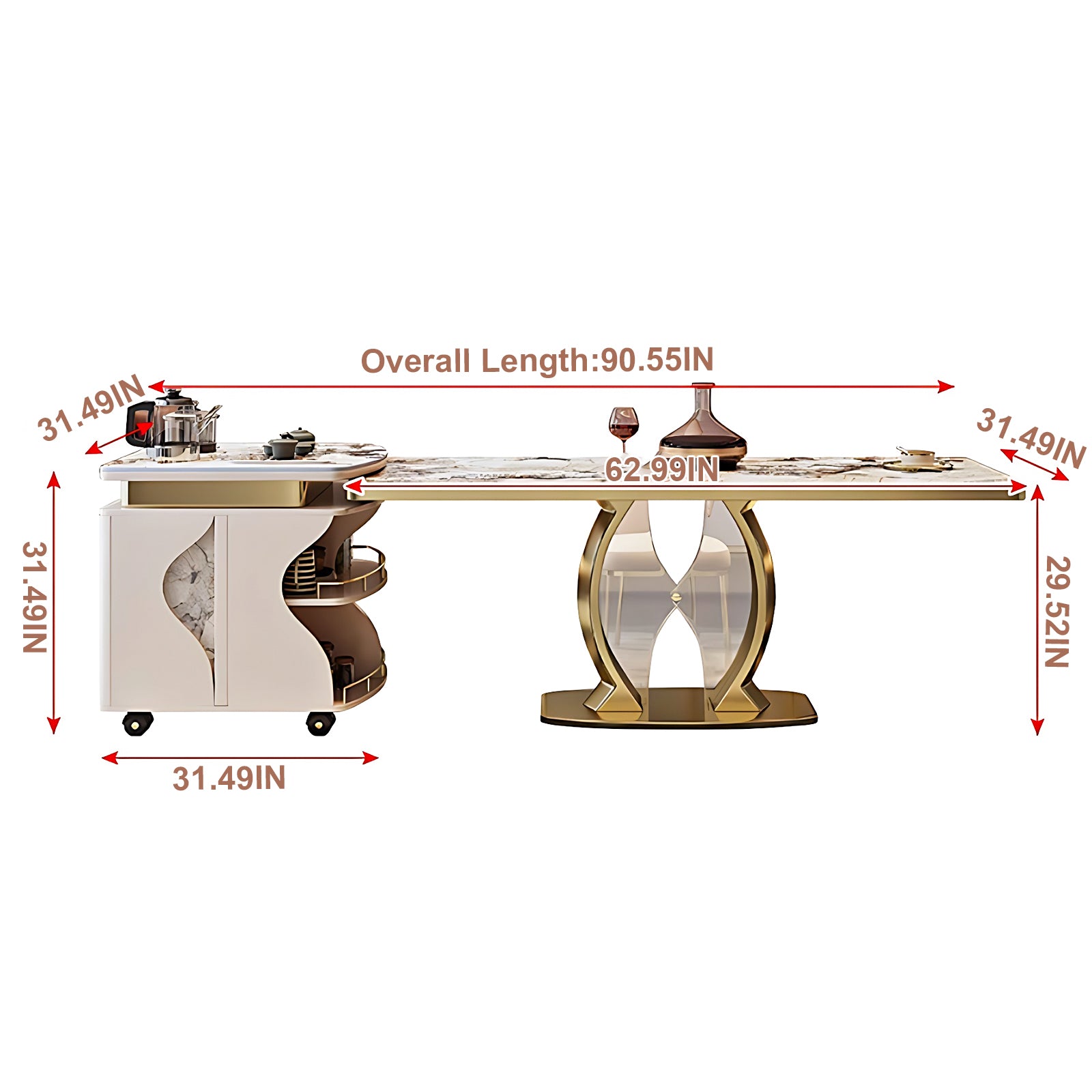 Aihm-Lon Kitchen Island with Extendable Table and Side Storage 82.67"-98.42"