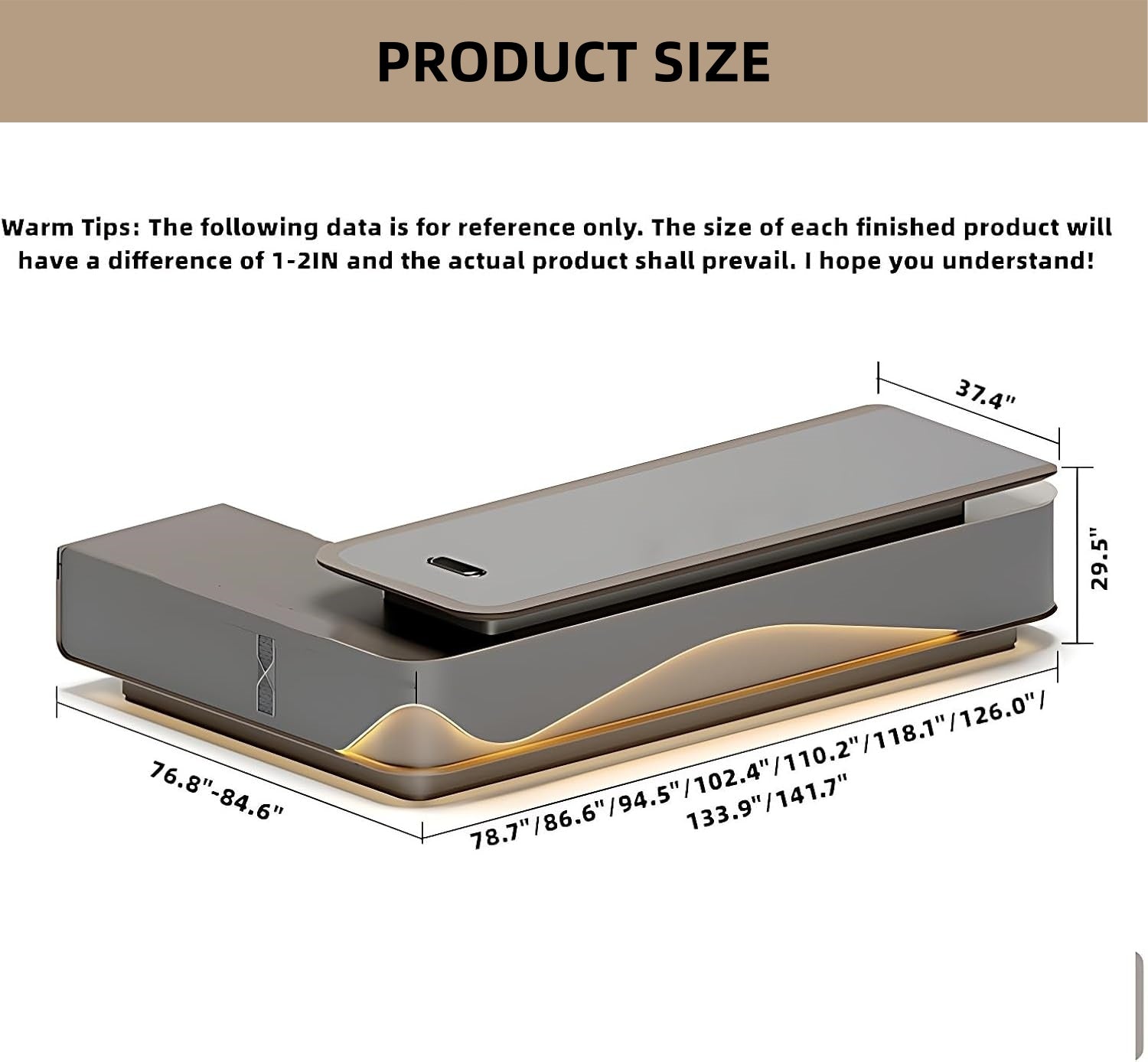 Aihm-Lon L-Shaped Executive Desk with Led Lights 78.7"-133.9"