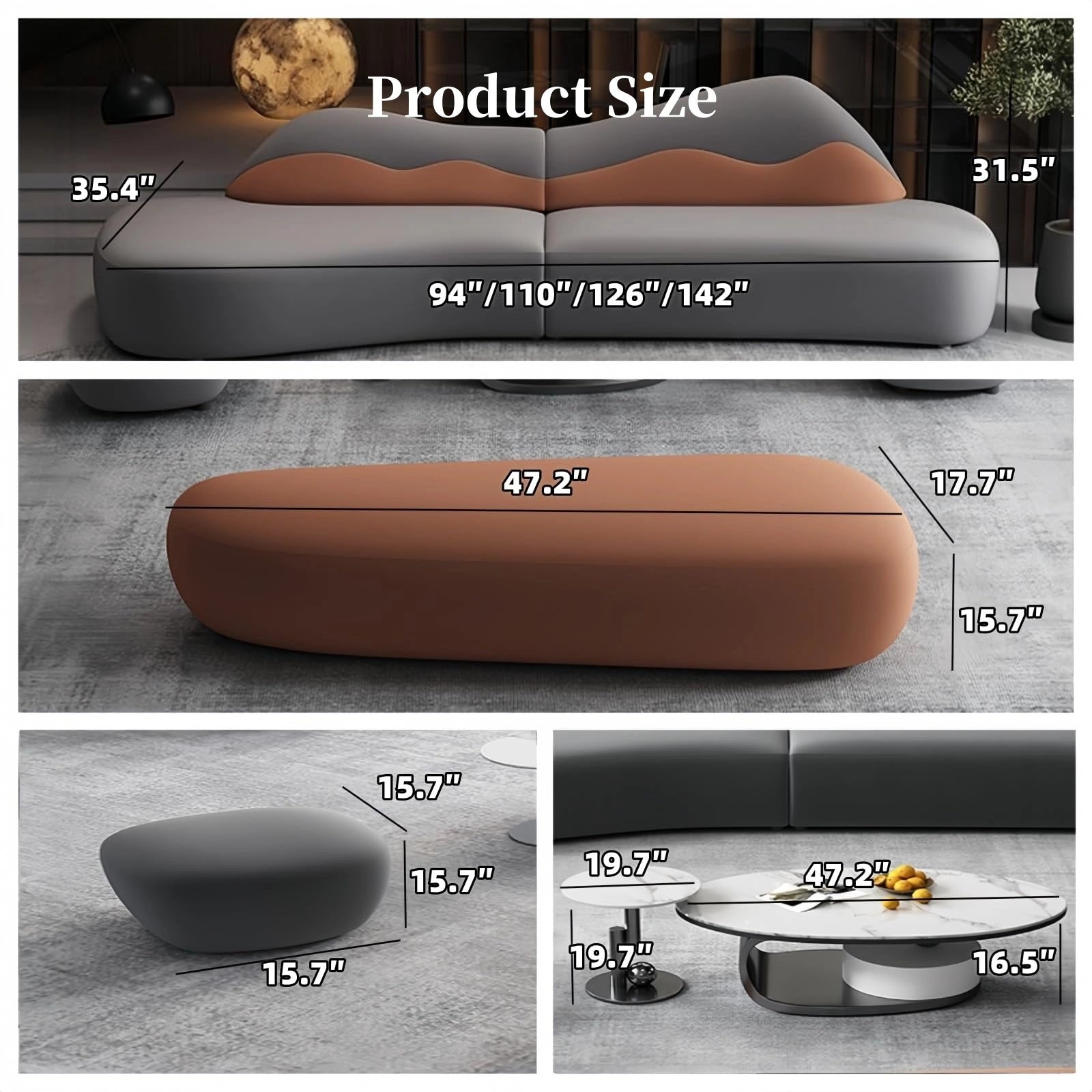 Versatile Luxury for Modern Living: A stylish sectional sofa with matching coffee table, 2 poufs and 1 bench brings a fresh look to your living space....