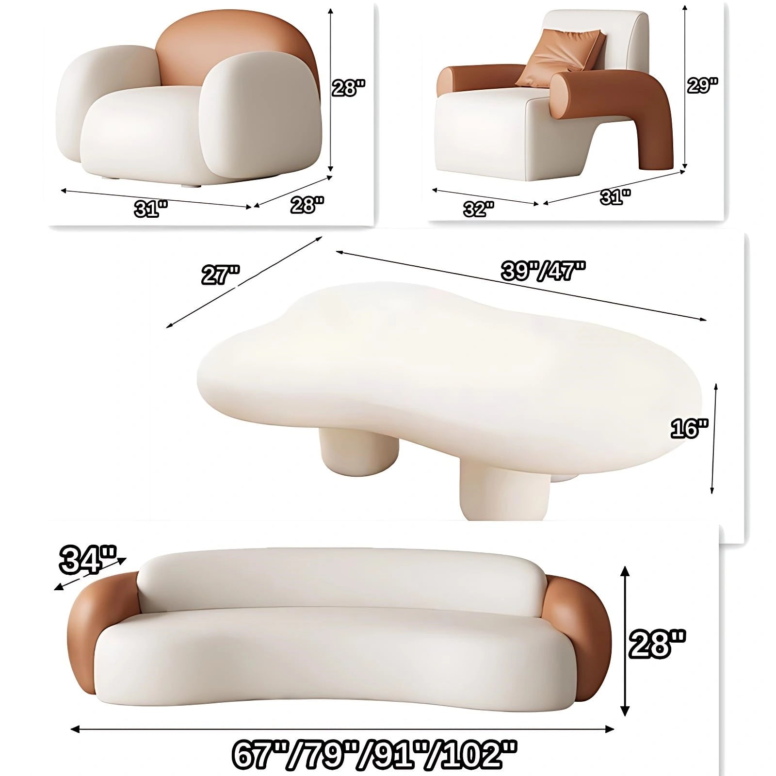 Aihm-Lon Commercial Grade Sectional Sofa Set Cream Couches wih Table and Chair 67" -102"