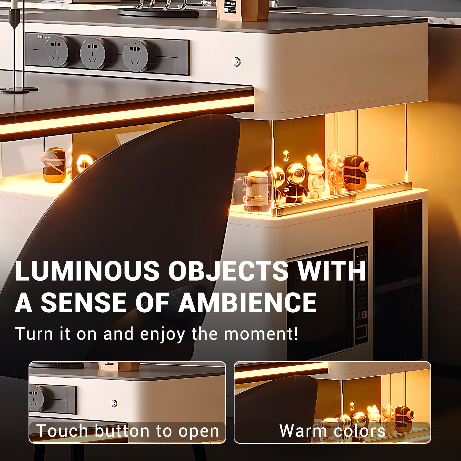Multifunctional: The island platform integrates intelligent ambient lights, which can instantly turn your space into a comfortable and warm atmosphere with just a gentle touch. It also has a convenient socket that can effortlessly charge the device