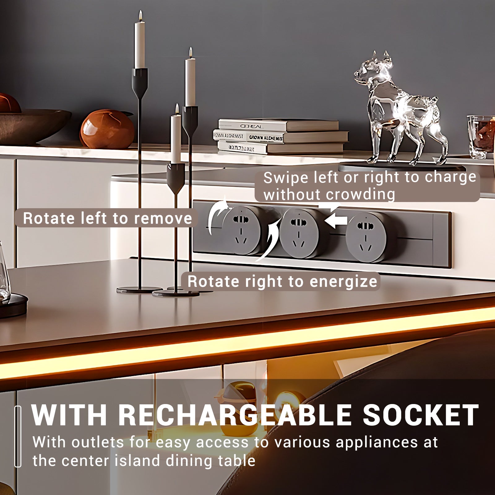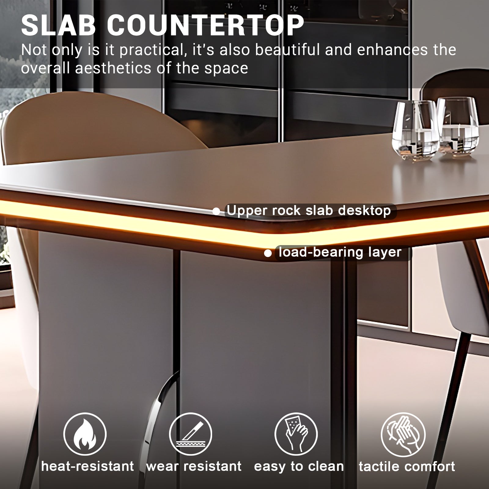 Exquisite Craftsmanship: The desktop is made of 6MM rock slabs and 45mm thick bottom plates, ensuring durability. The appearance of the island is decorated with baked paint. The table legs are made of acrylic material, which has excellent stability