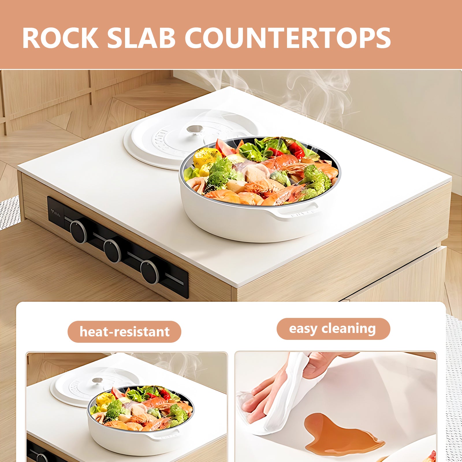 Beautiful and Durable Material: the table top is made of rock plate, which is extremely hard, smooth and easy to clean; as a load-bearing material, solid wood is stable and reliable for tabletop and table feet