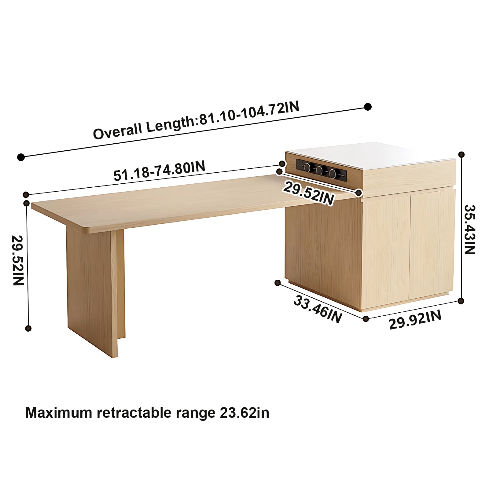 Retractable Dining Table: this model is an integrated design of dining table island and table;the table can flexibly adjust the size of the table according to the number of people eating, so it can be easily handled for both daily meals and parties