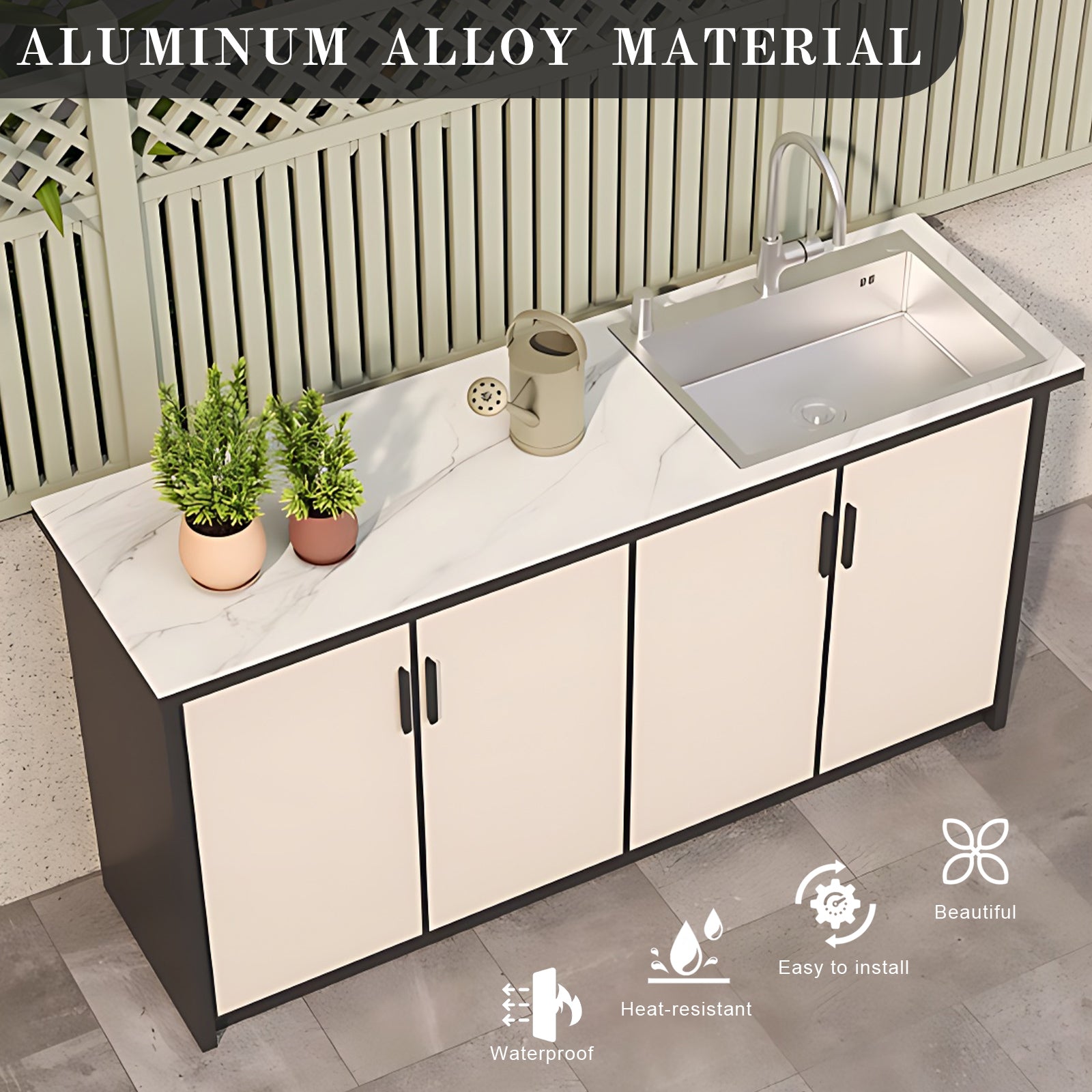Stylish and High-End Design: Crafted in a sophisticated beige hue, this beautiful sink cabinet has a modern, high-end aesthetic that will enhance your outdoor space. This outdoor cabinet combines multiple design elements to create a seamless and stylish look for any environment. The cabinet is made of high-quality aluminum alloy, with stylish black handles and a durable stainless steel sink. This sink cabinet has been carefully designed by our team of experts to add a touch of elegance.