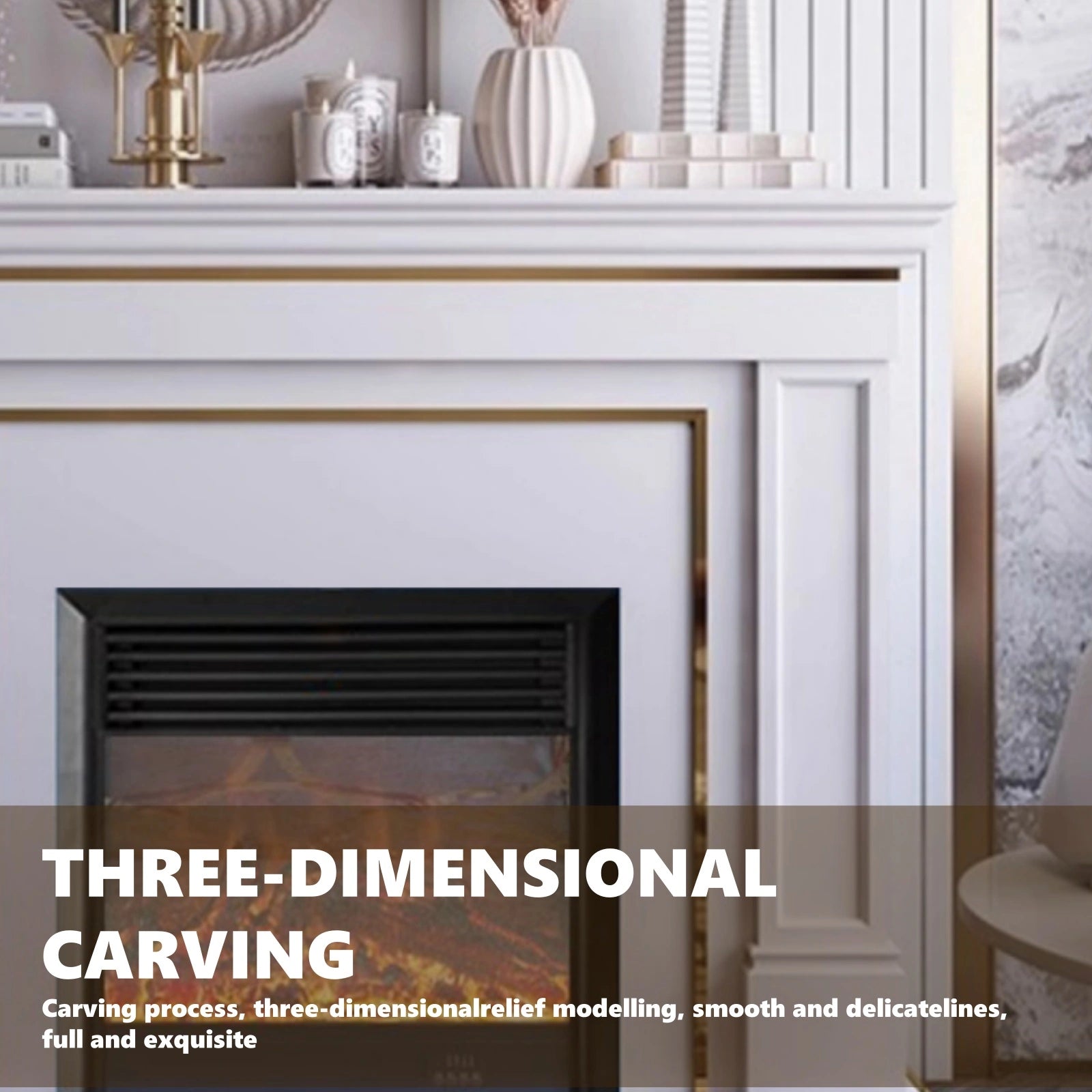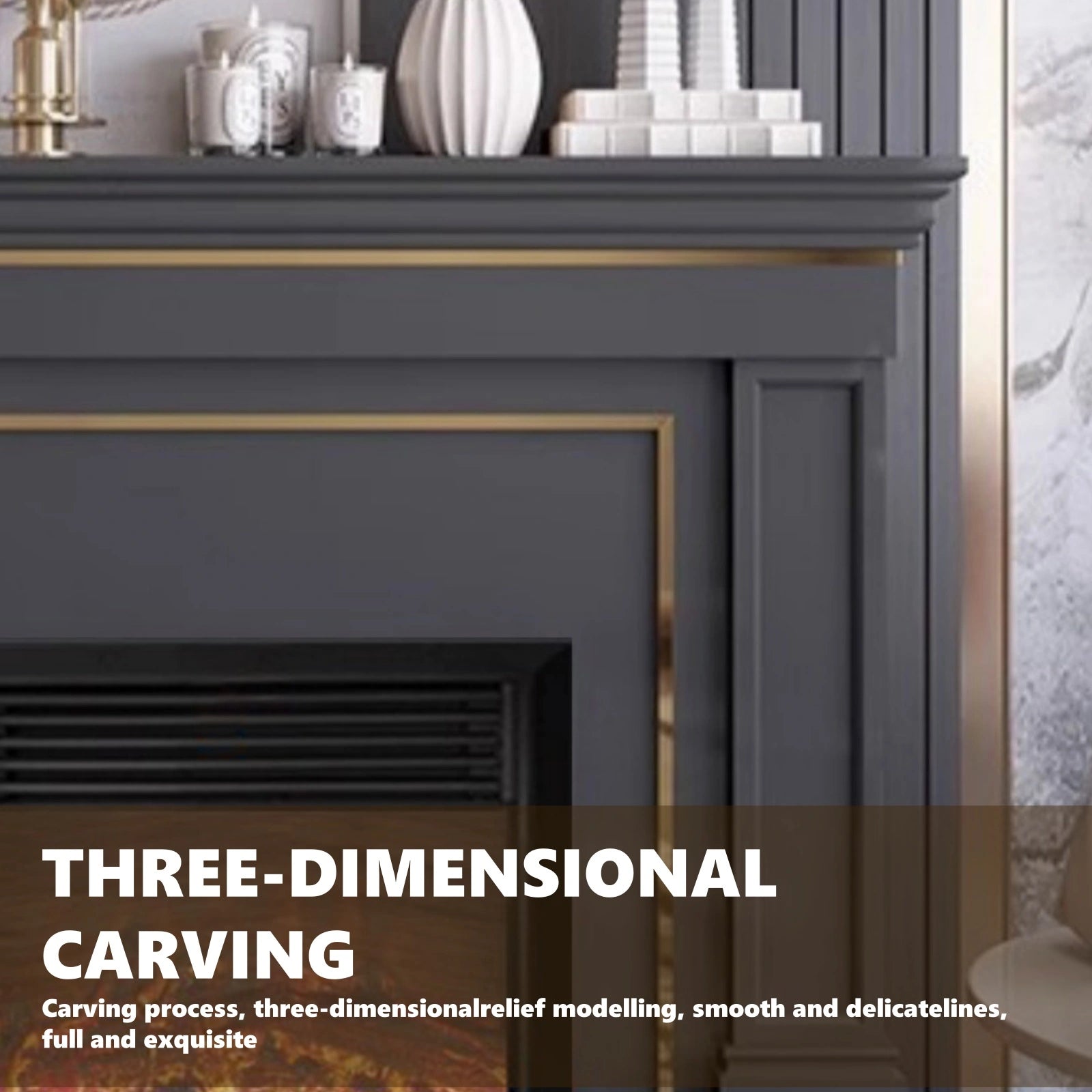 Material: The solid wood used for the main body is sturdy and has a natural, beautiful grain, providing the fireplace with a stable structural support while also giving it a warm, natural feel, enhancing its overall quality and environmental friendliness