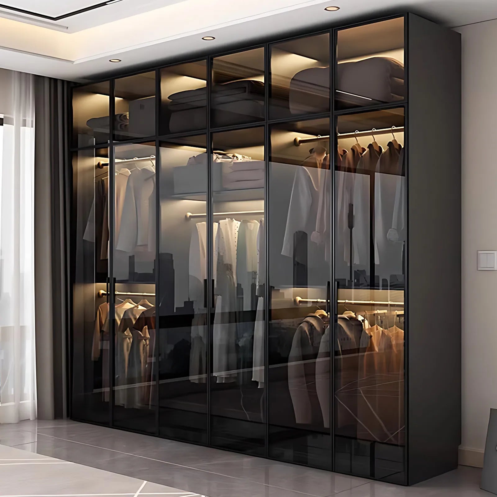 Aihm-Lon Black Wardrobes with Grey Glass Door with Storage Rack 79"-126"