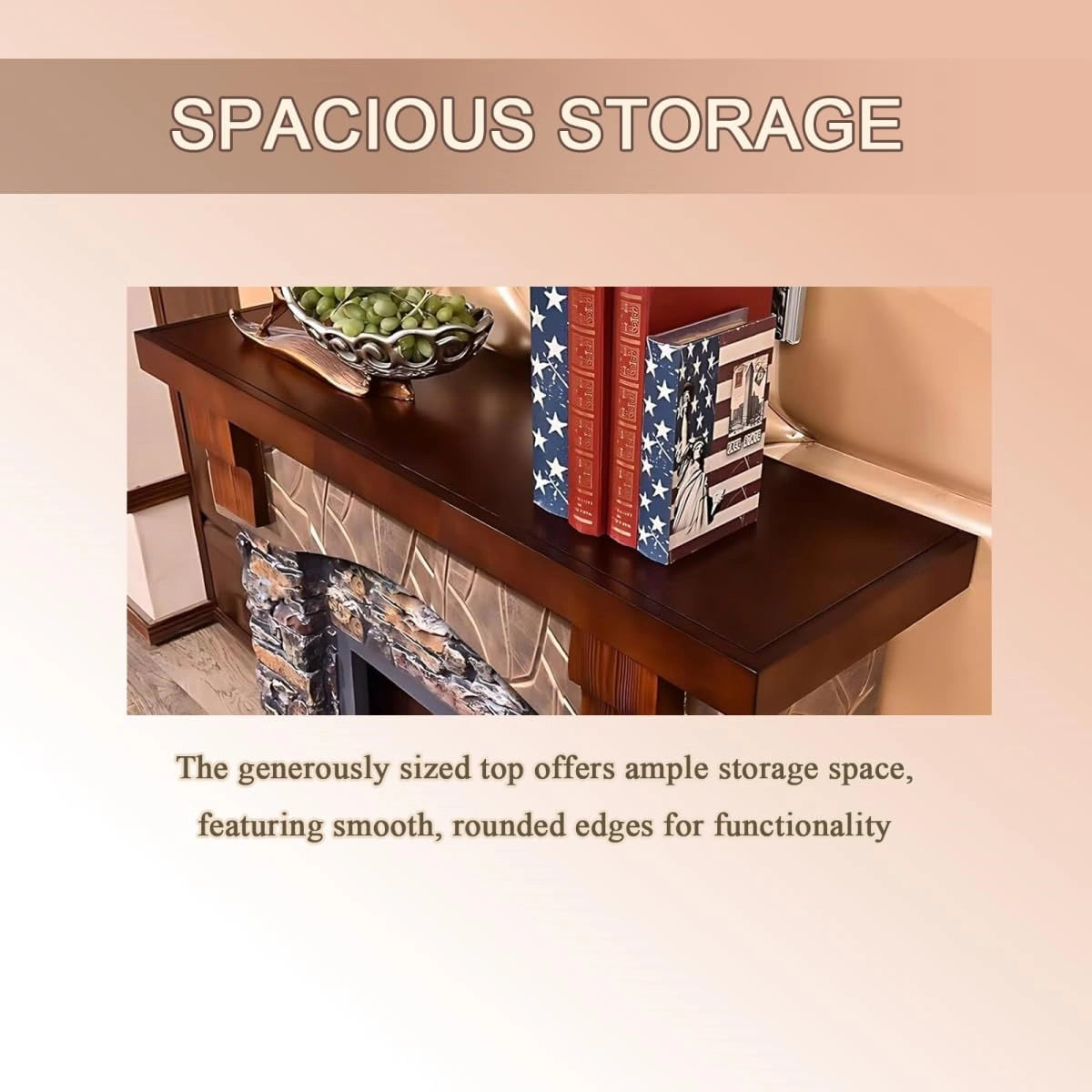 Solid Wood Structure: Built with solid wood for both frame and top, this fireplace offers durable and stable support and natural warmth in appearance. The wood's smooth, coated finish adds polish while ensuring stability and long-term structural integrity