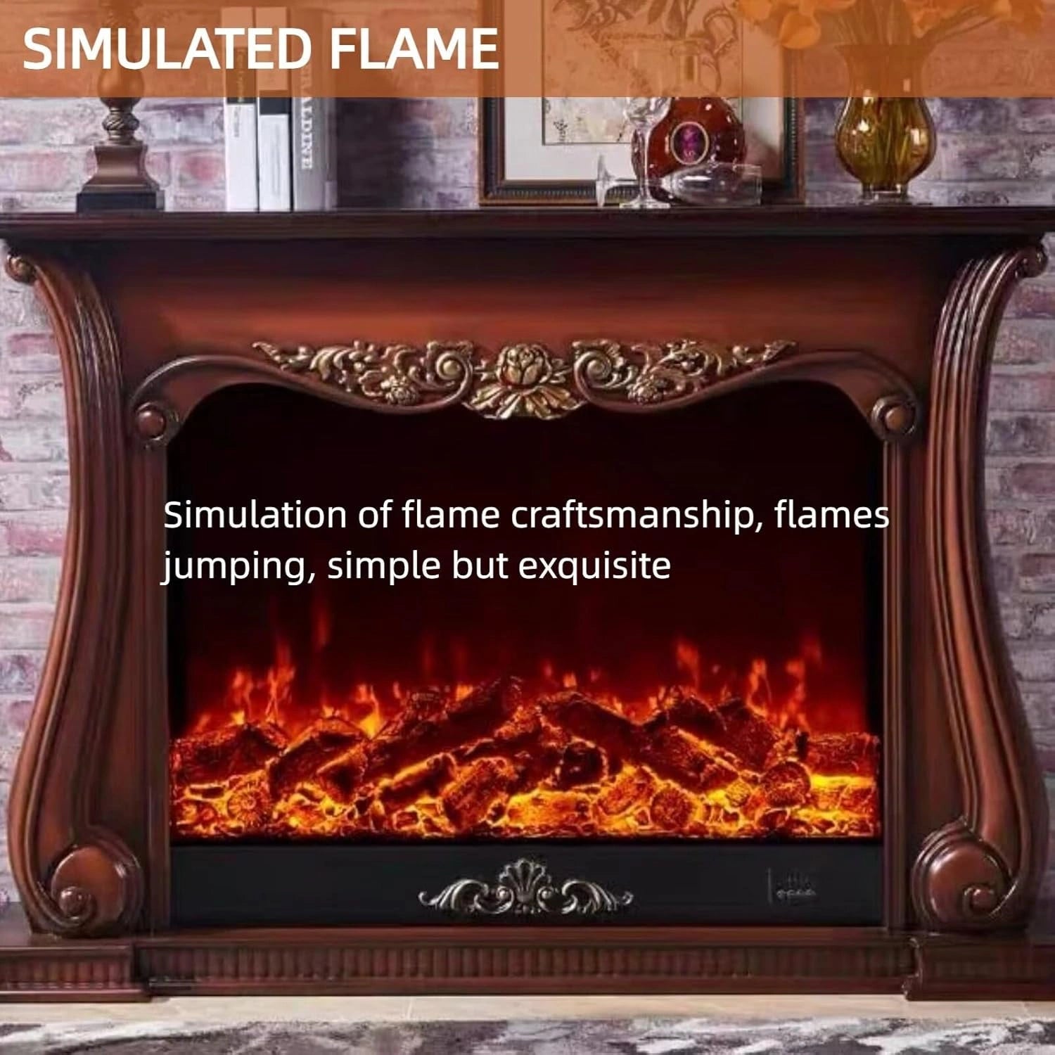 Aihm-Lon Brown Electric Fireplace with Wood Grain and Carved Decoration 59”