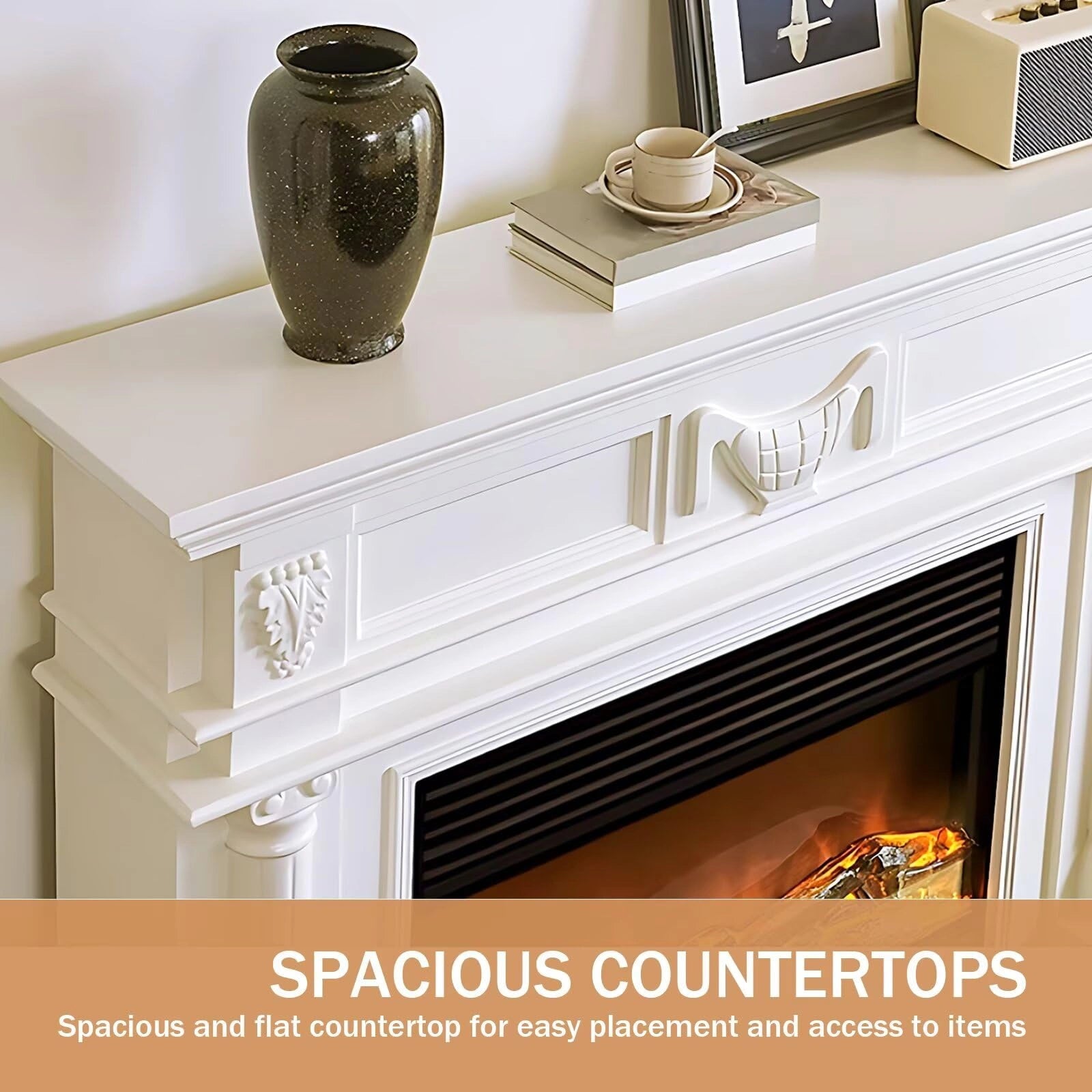 Functionality: The spacious and uncluttered countertop provides versatile storage space for decorative items, electronic products or daily necessities. The layered three-dimensional layout creates visual depth while maintaining simplicity