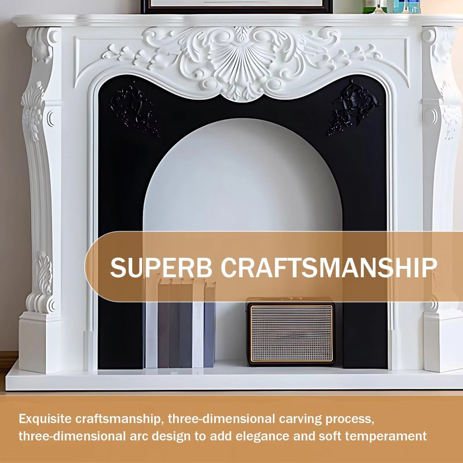 Unique Line Art: Every inch of the fireplace has been carefully carved, layer by layer, to highlight its deep three-dimensional depth and exquisite details. This exquisite craftsmanship cleverly balances the curved form and embodies uniqueness