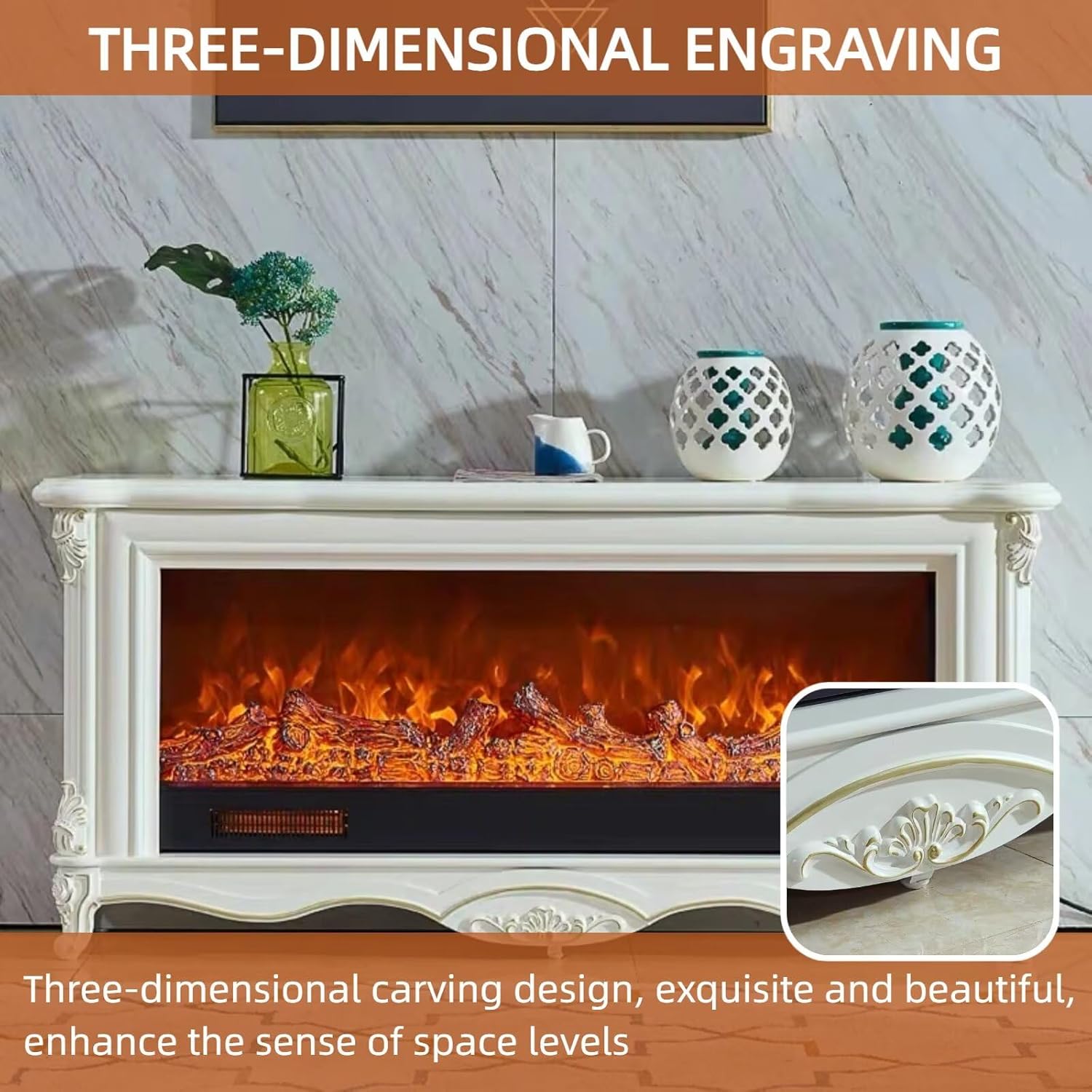 Constant-Temperature Heating: Equipped with convenient heating functionality to provide warmth during cold seasons. In warmer months, you can activate the flame effect alone for year-round use
