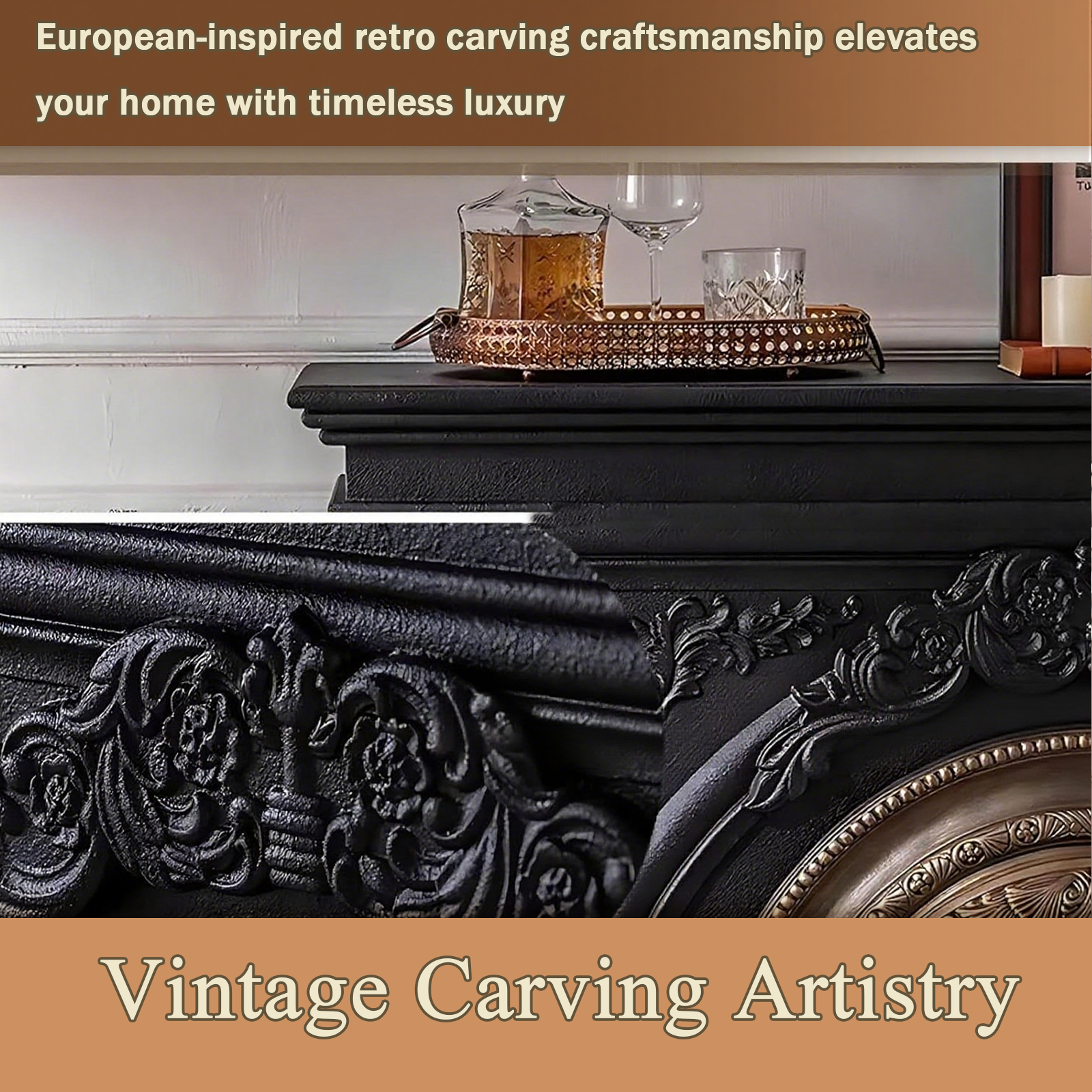 Vintage Aesthetic: Finished in matte black and gold, this fireplace combines old-world charm with dramatic elegance. Its graceful silhouette and bold tone create a grounded, moody focal point in both classic and modern living spaces with character