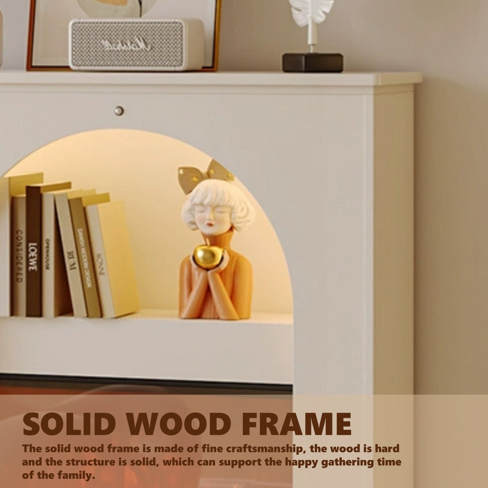 Appearance: The overall design is elegant, featuring an arched openwork motif. It incorporates a heating element with simulated flame effects, offering both a contemporary aesthetic and a cosy ambience, much like a refined work of art within the home