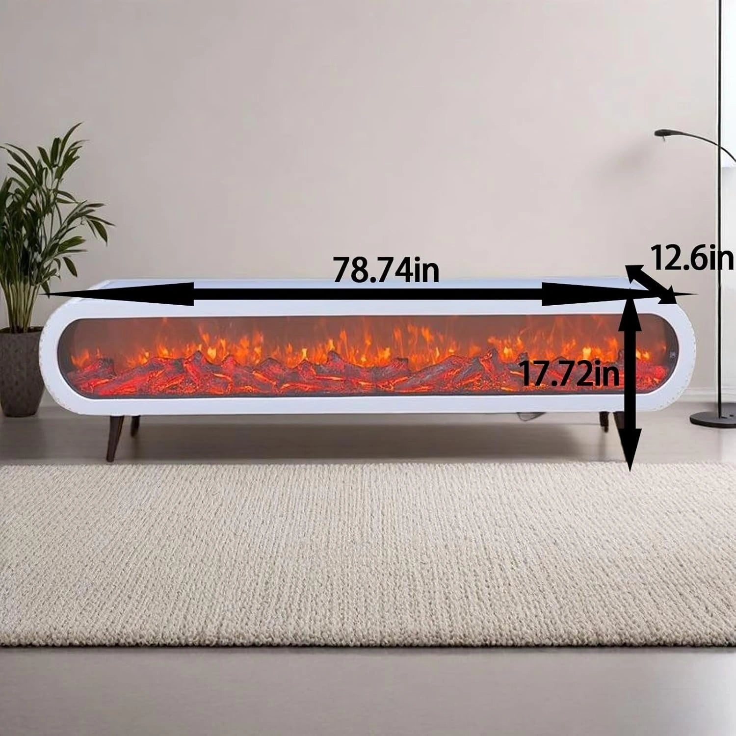 Aihm-Lon Indoor Electric Fireplace White Modern Style with Decorative Faux Flame 79”