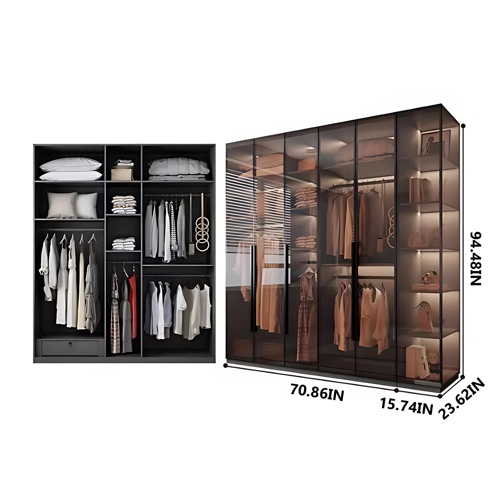 Aihm-Lon Luxurious Wardrobe with Glass Doors Black Handle and Shelves 35"-94"