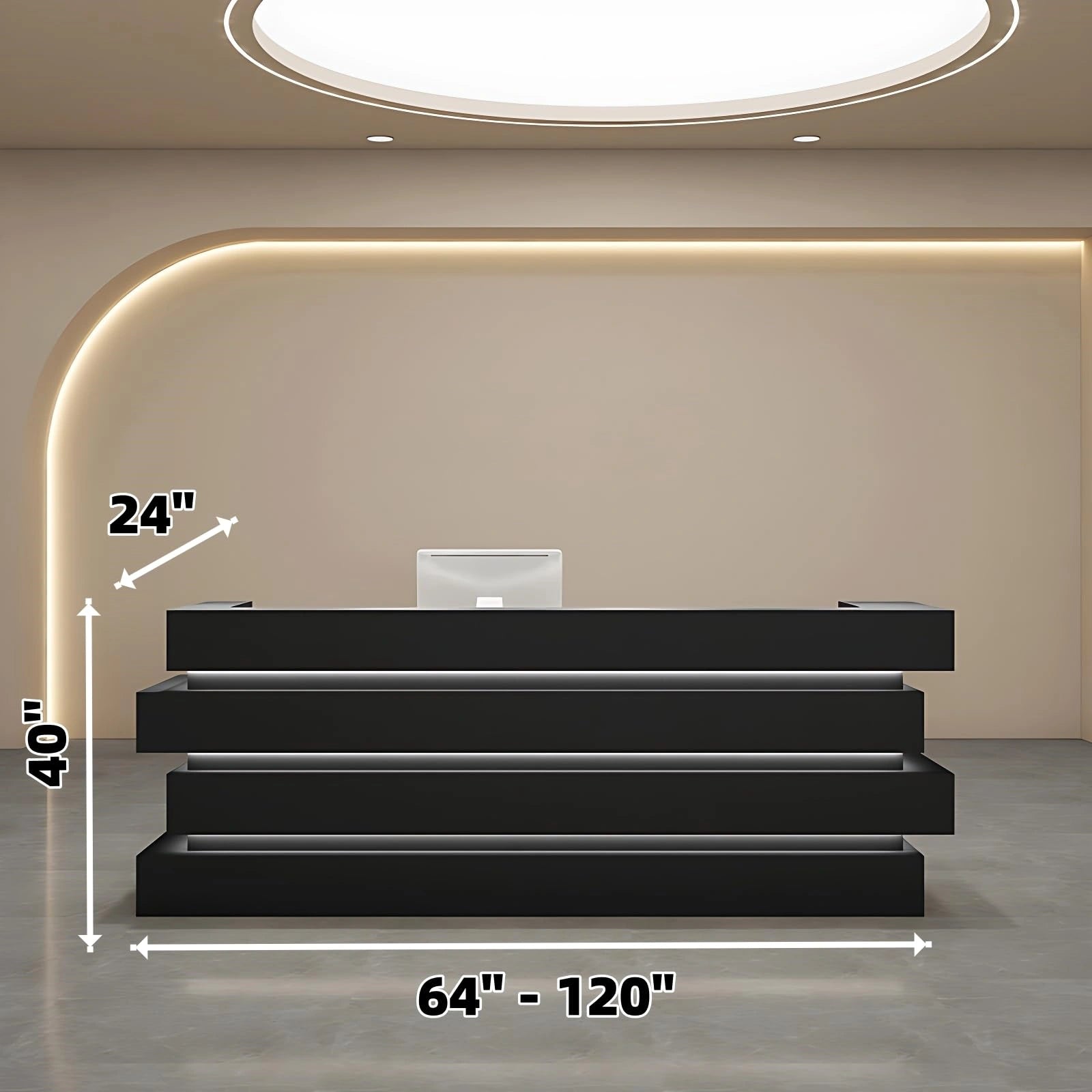 Aihm-Lon Reception Desk with Hidden Lighting for Office and Checkout Areas 64"-120"