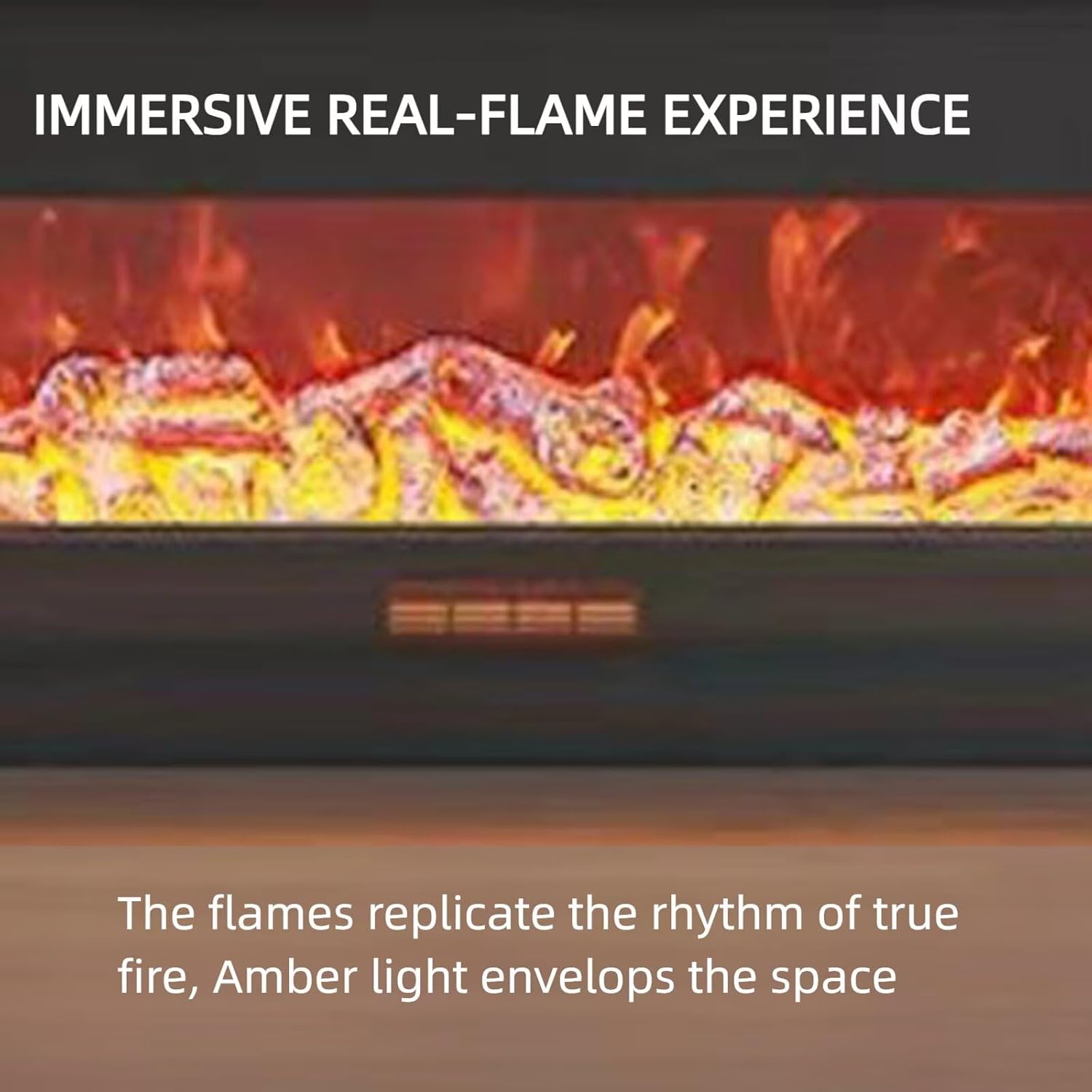 Efficient Heating: Equipped with efficient heating, this electric fireplace can quickly warm up the room. While offering an attractive visual of flames, it also delivers practical warmth, combining aesthetics and functionality