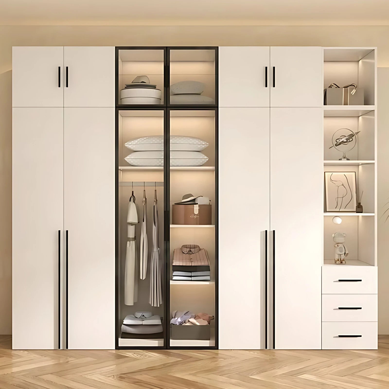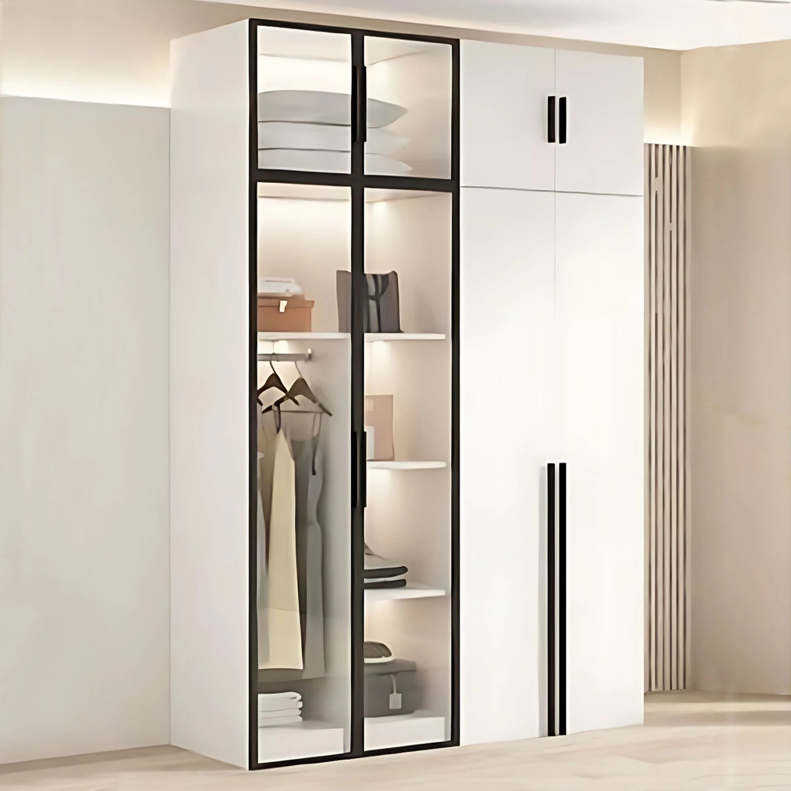 Elegant and Transparent, A Light Luxury Choice: This wardrobe is carefully crafted with bright white glass, exuding a refined and elegant temperament. The simple shape contains exquisite craftsmanship, which perfectly blends with the modern home style and enhances the style of the space.