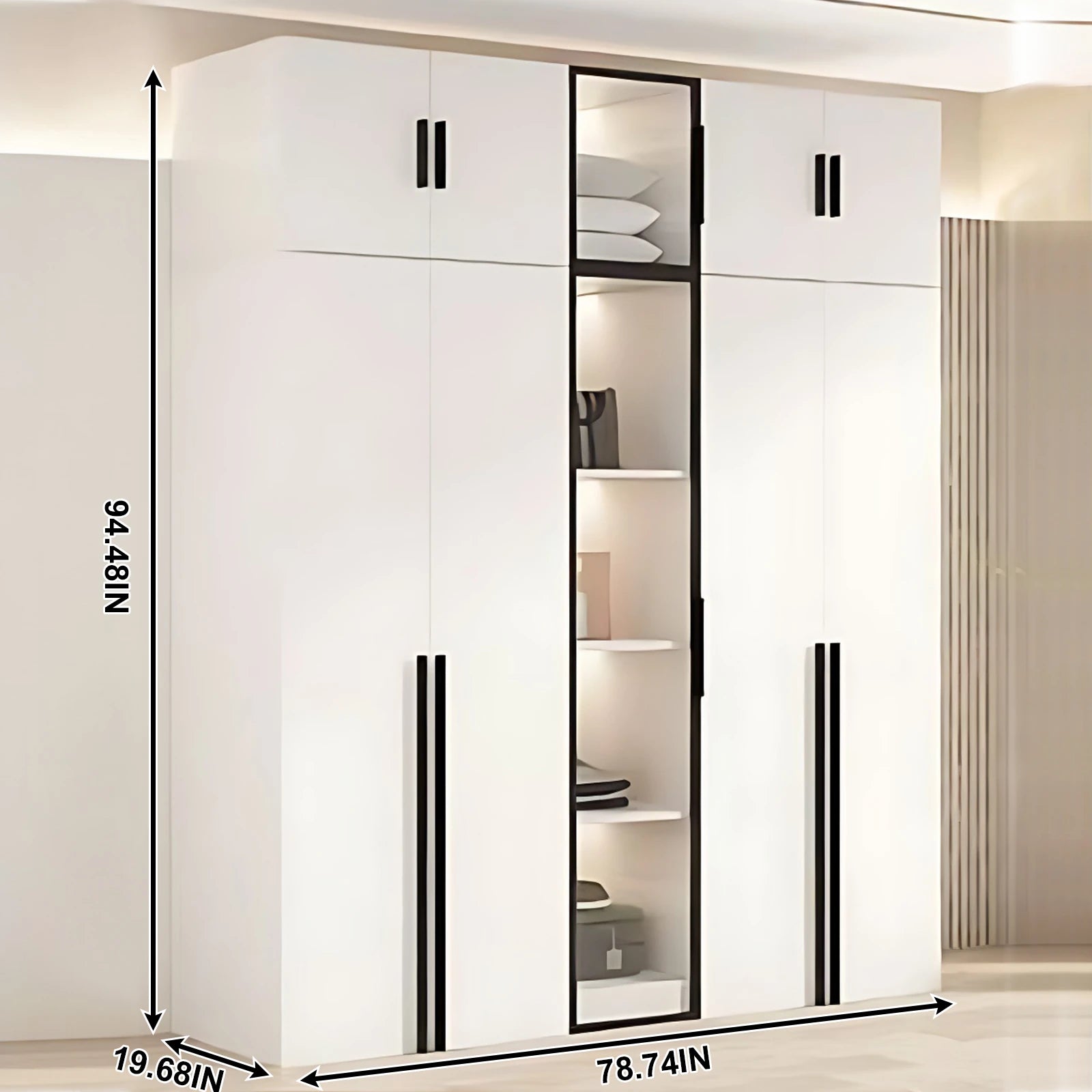 Aihm-Lon Sleek Wardrobes Closets with Black Exquisite Handle and Light 63"-102"