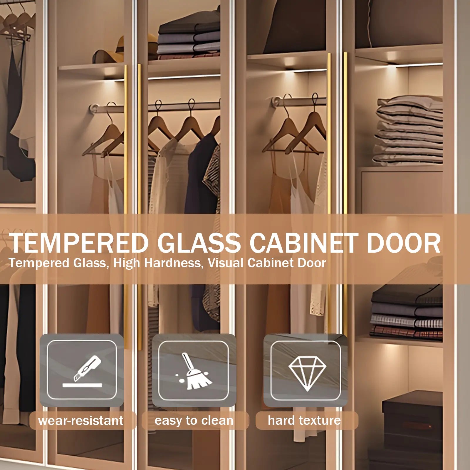 Modern Light Luxury Design: Combines a sophisticated light luxury aesthetic with contemporary style for a look that perfectly aligns with modern home decor. The combination of black framing, sleek gray tempered glass, and premium metallic accents elevates any bedroom or walk-in closet space