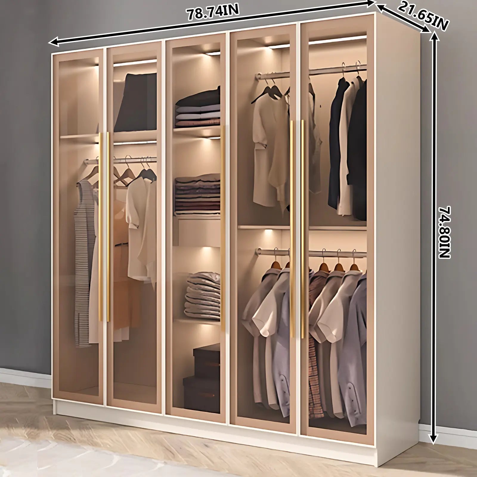 Aihm-Lon Wardrobe with Storage Design Metal Handle and Intelligent Lighting 63"-94"
