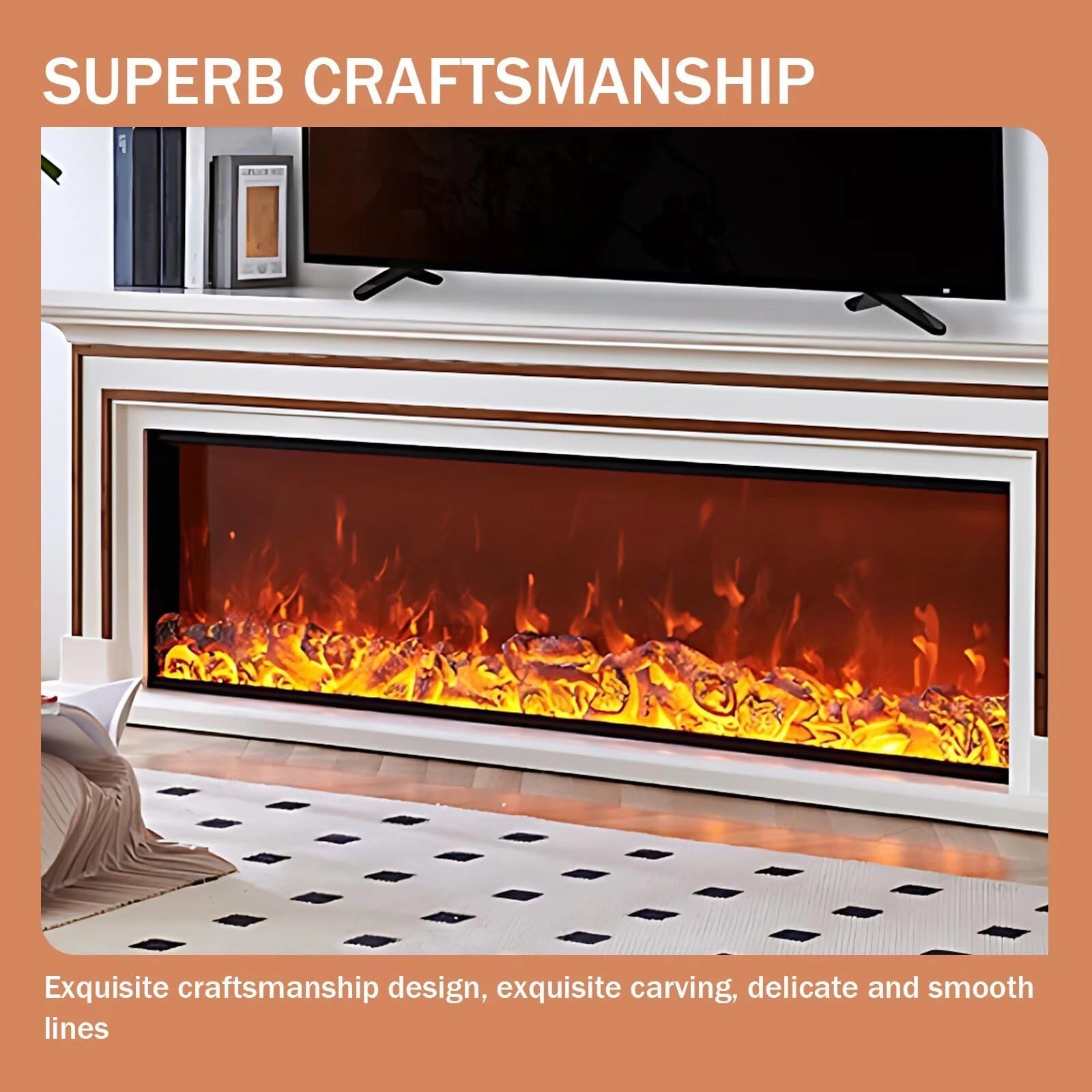 Aihm-Lon White Electric Fireplace with Decorative Flame Brown Line Design 71"-79”