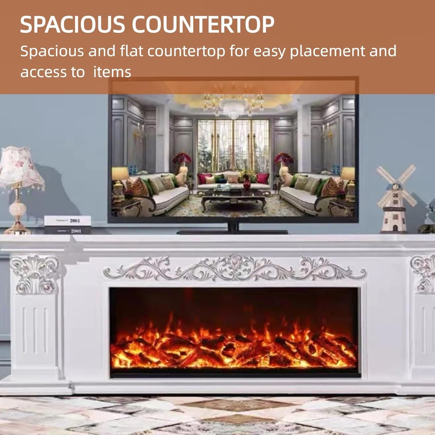 Decorative Flame Effect: Features highly realistic 3D flame effects that closely mimic real fire. The flame size is adjustable, allowing you to customize the ambiance to suit your mood and create a cozy atmosphere in your home