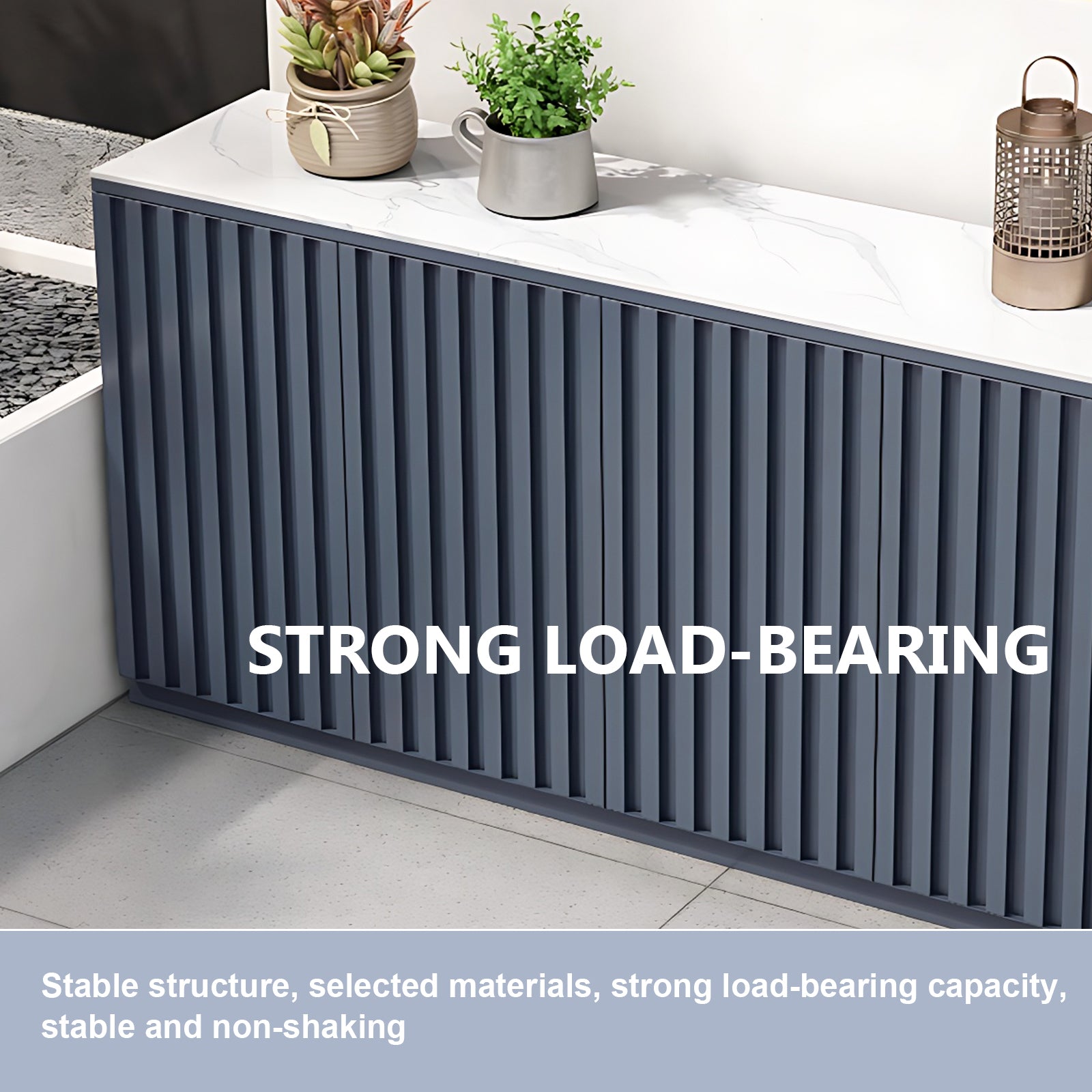 Modern Minimalist Style: gray striped cupboard doors with white textured countertop is simple and elegant, which can be integrated with various outdoor scenes, and the hidden handle design adds a sense of fashion and exquisiteness