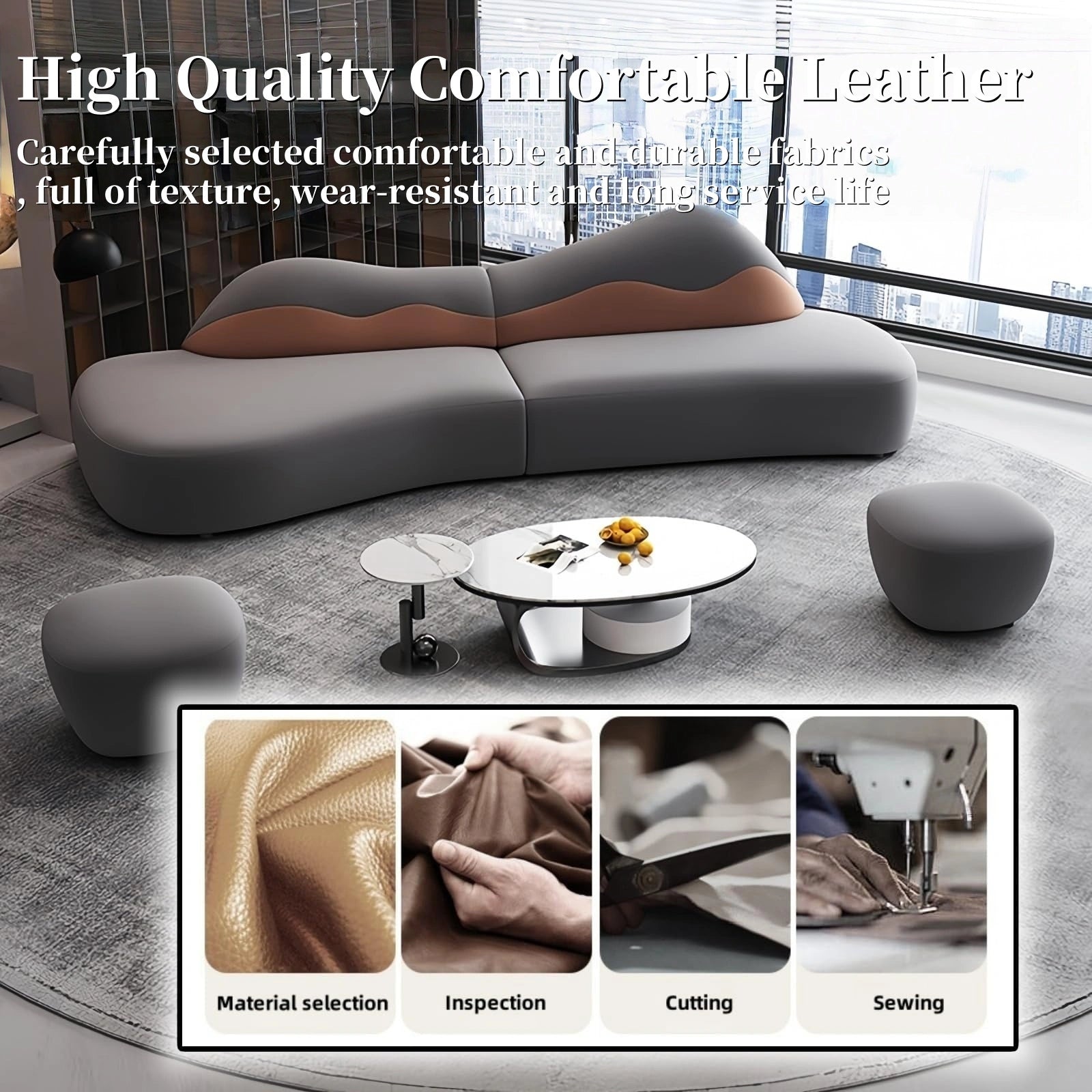 Versatile Luxury for Modern Living: A stylish sectional sofa with matching coffee table, 2 poufs and 1 bench brings a fresh look to your living space. Whether it's a compact apartment or a spacious home, this sofa set blends sophisticated design with smart functionality to easily fit into your lifestyle.