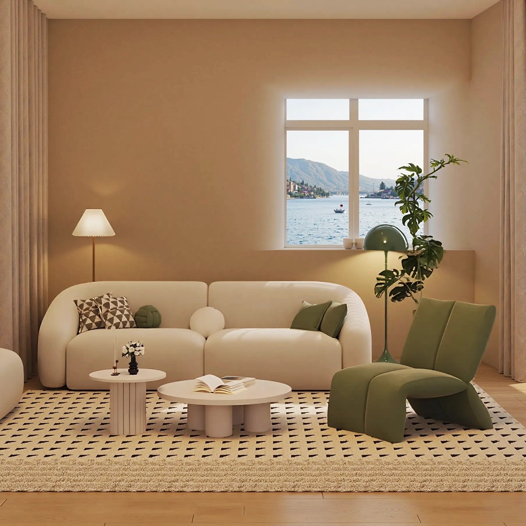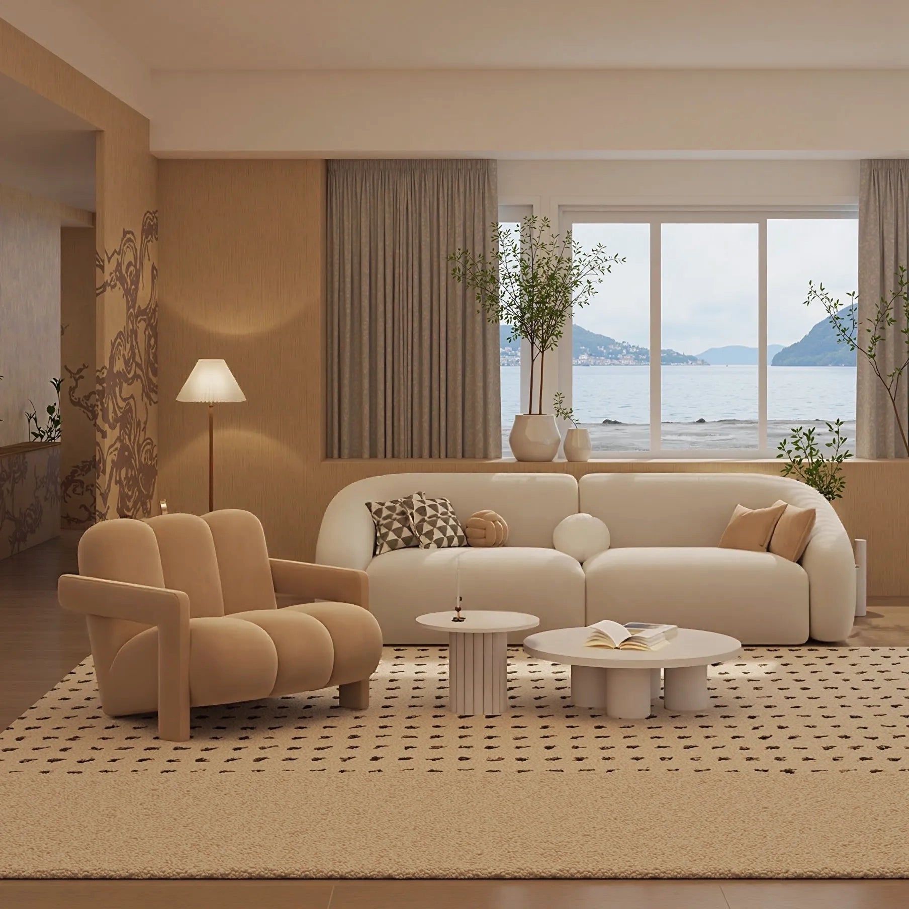 Designer Inspired Curved Sofa: Indulge in the luxurious embrace of our designer inspired curved sofa, which has elegant and flowing curves and is carefully crafted. The soft arched backrest provides unparalleled support for your head and back, ensuring that you can relax and feel free from pressure for a long time.