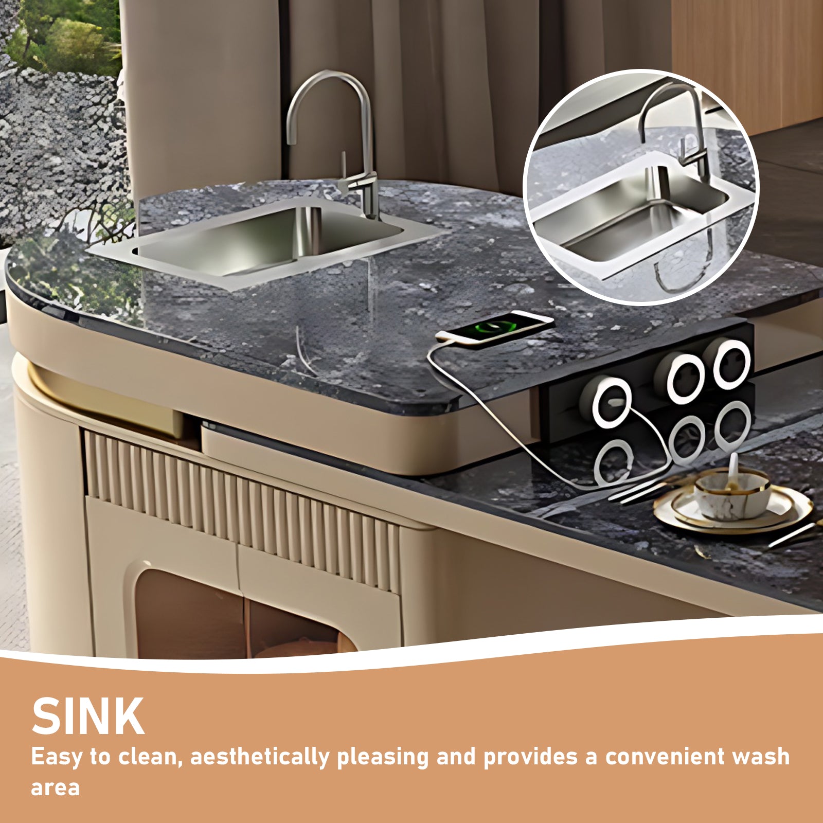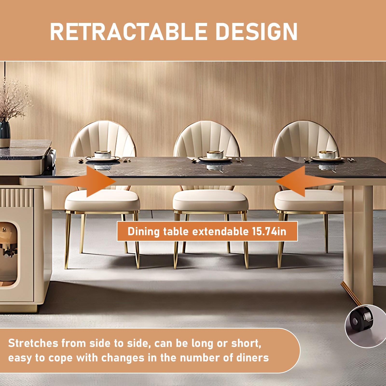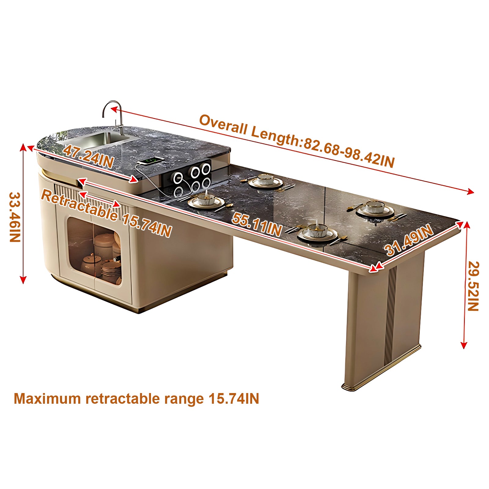 Retractable Dining Table:the island platform and table are integrated, and the size of the table can be adjusted according to the needs, saving space in daily use;when many people have dinner, easy stretching can meet the demand