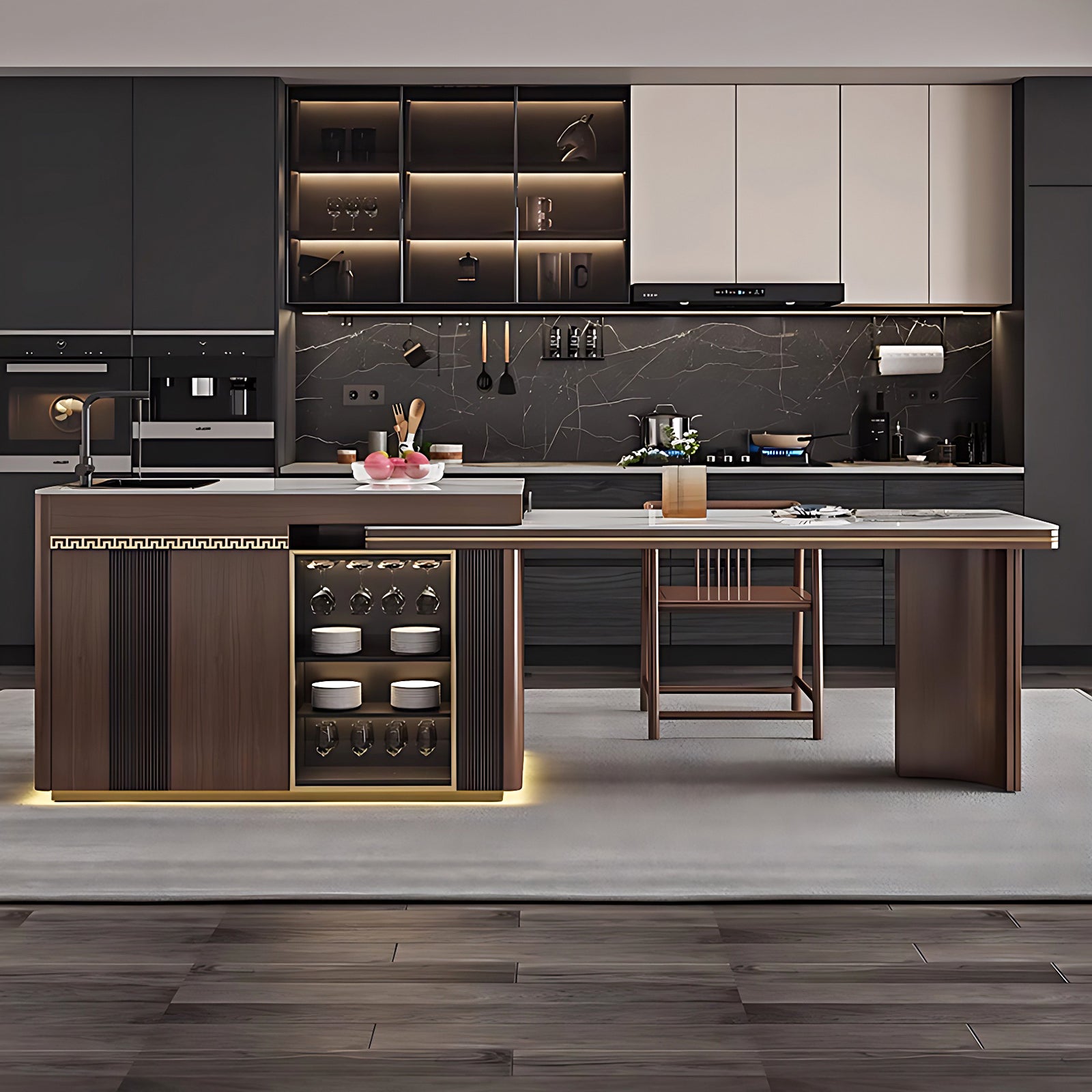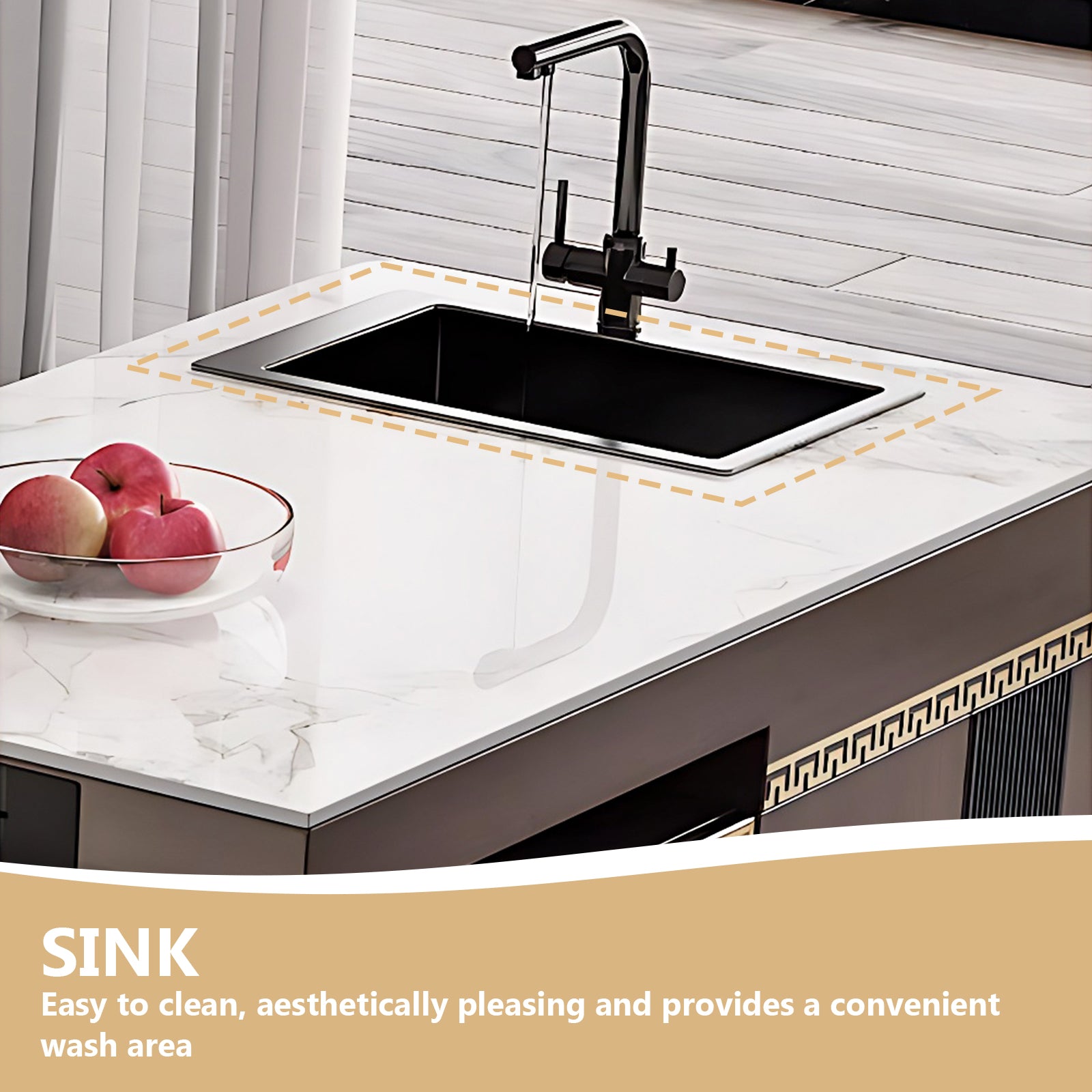 Integrated Slate Sink:This integrated design avoids the gap between the sink and the countertop, and the sink and the island platform are perfectly integrated, which improves the overall practicality of the kitchen