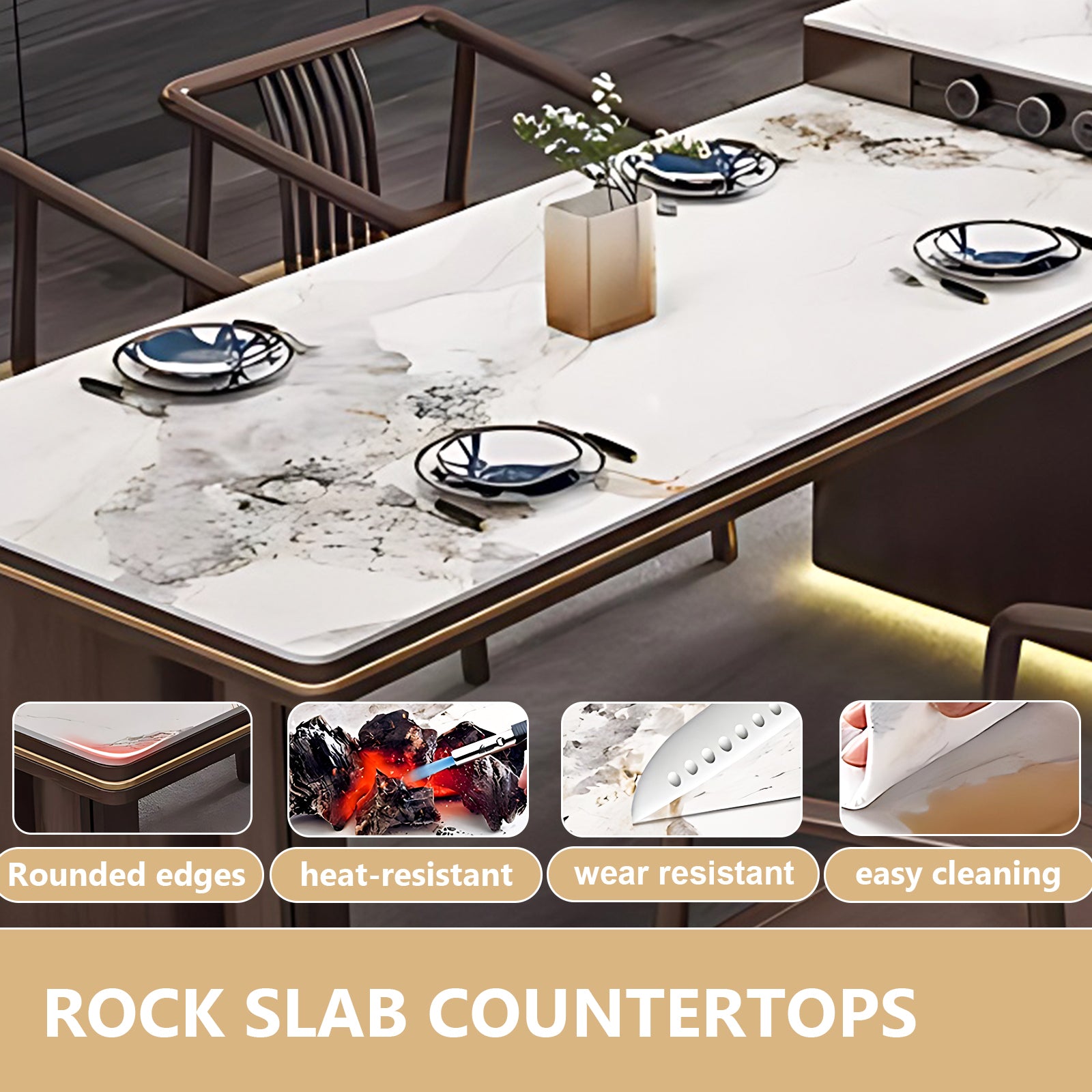 Sturdy and Durable Material: the table top and island table top are made of rock slabs, which are hard and not deformed; the cabinet is made of wood with good bearing capacity