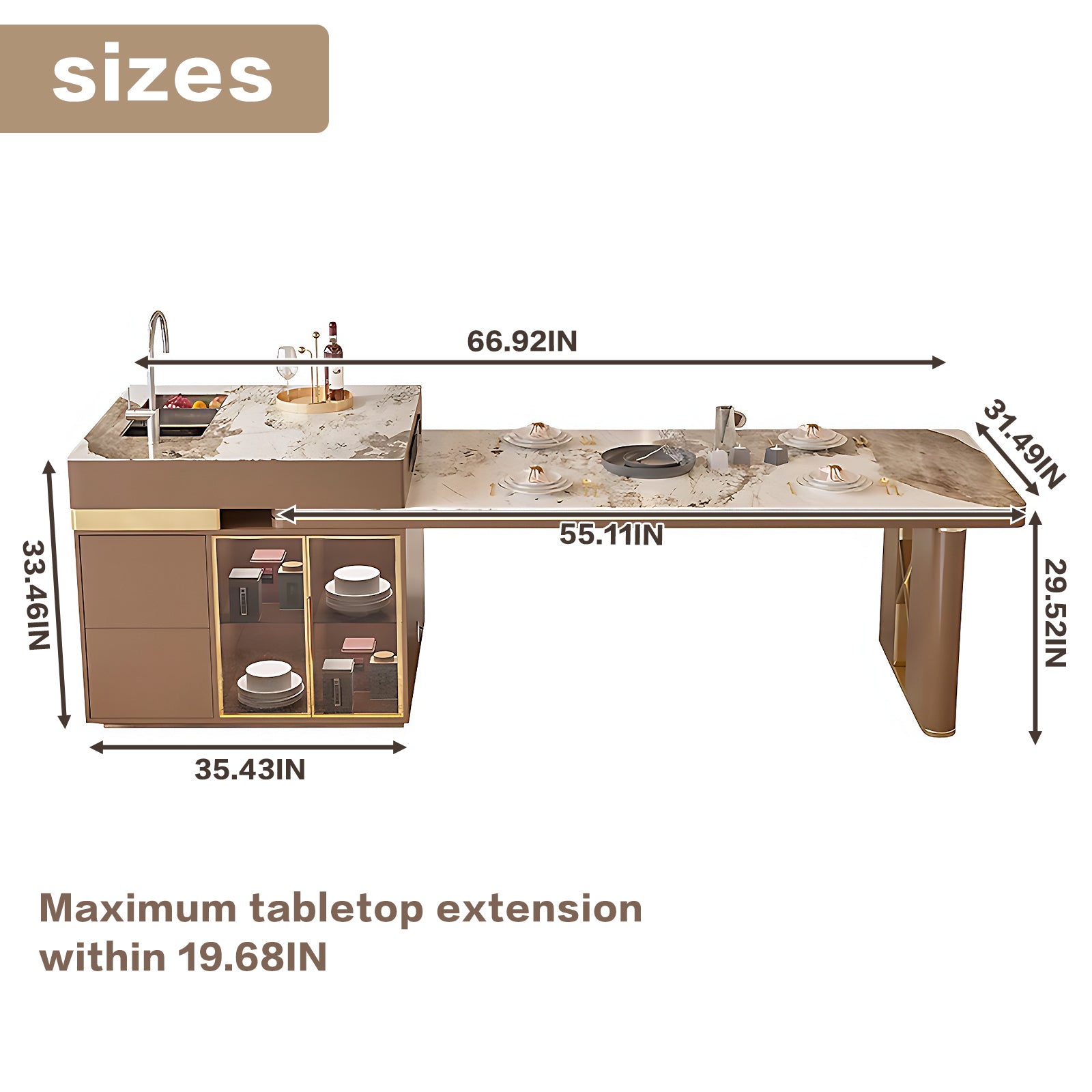 Aihm-Lon Kitchen Island with Extendable Table Side Storage Cabinet 66.92"-82.67"