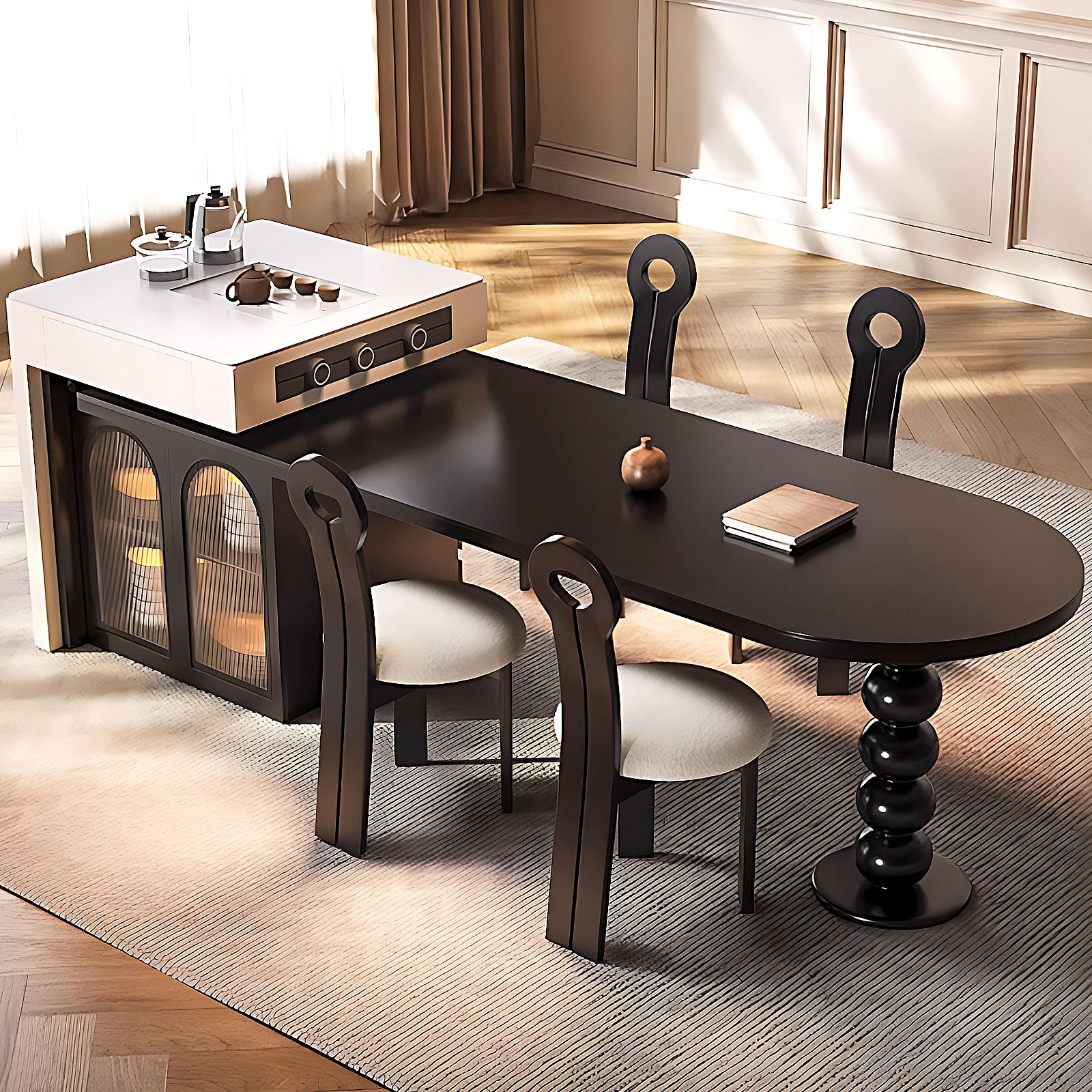 French Luxury Design: This piece is elegant and sophisticated with a stylish black hue, gourd-style legs and striped glass cabinet doors on the island table. The design exudes simplicity and sophistication, combining French elegance with modern style