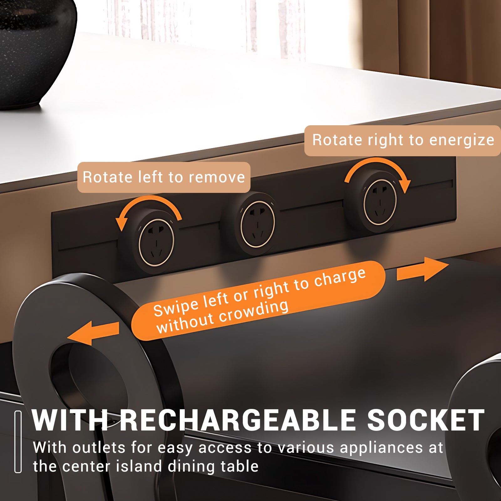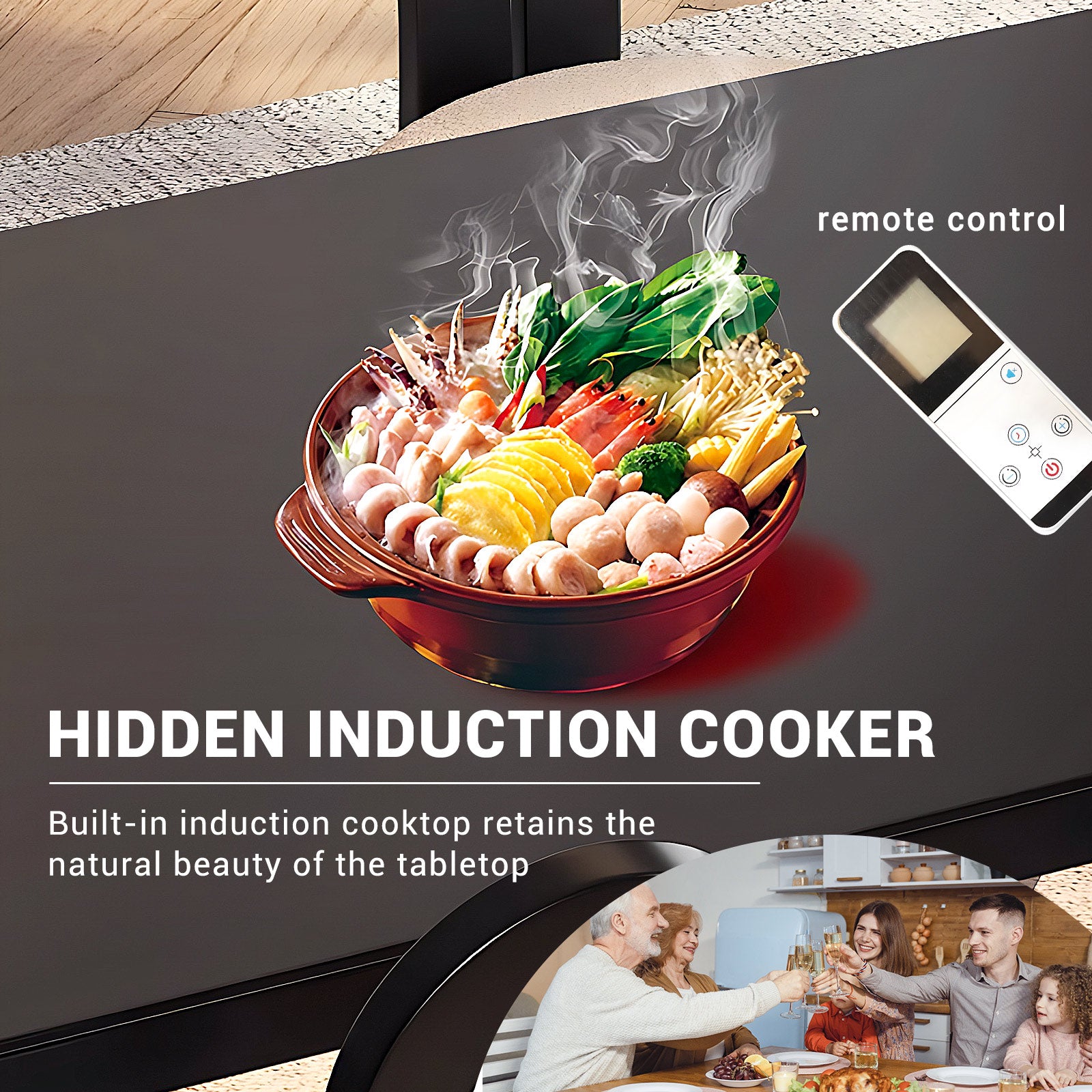 Versatility: Our product comes with a socket to quickly charge your electronic devices. It also includes a hidden induction cooker with remote control for seamless operation. The stylish design maintains a natural, transparent tabletop, while the rounded corners avoid collisions