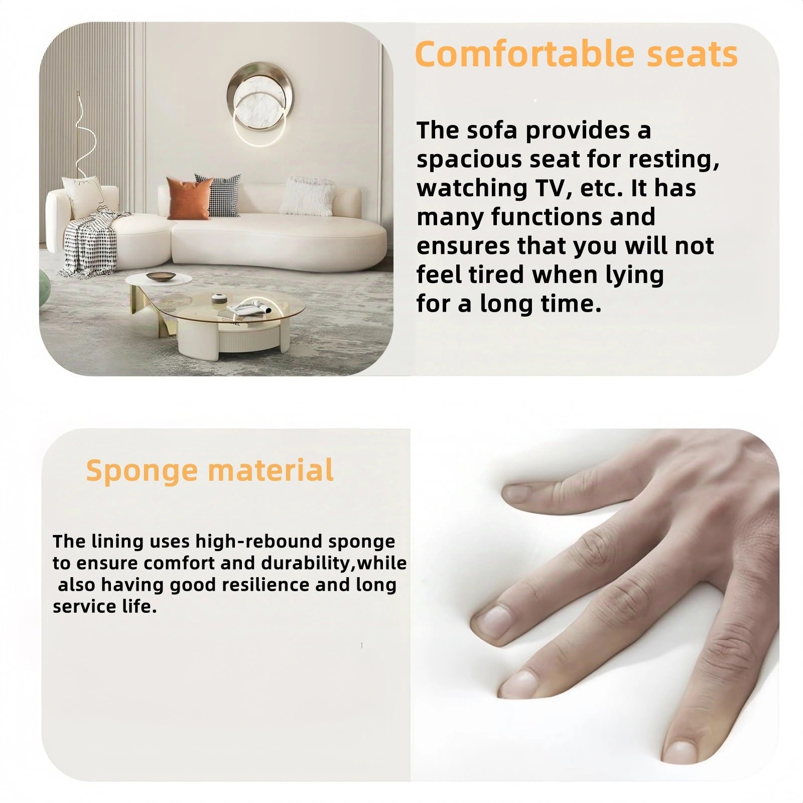 Plush Yet Supportive Seating:Sink into high-resilience foam cushions that mold to your body without sagging. Whether it’s movie nights or entertaining guests, this sofa delivers all-day comfort with lasting structure.