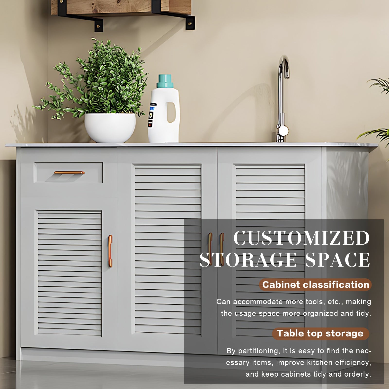 Generous Storage Space: Enjoy the spacious luxury of our oversized drawers and cabinets, meticulously designed to provide unparalleled storage capacity. Easily organize your outdoor items, daily essentials in the spacious compartments, and transform your outdoor sink cabinet into a serene and organized storage place. This cabinet embodies the epitome of convenience, elevating your storage experience and enhancing the functionality of the space.