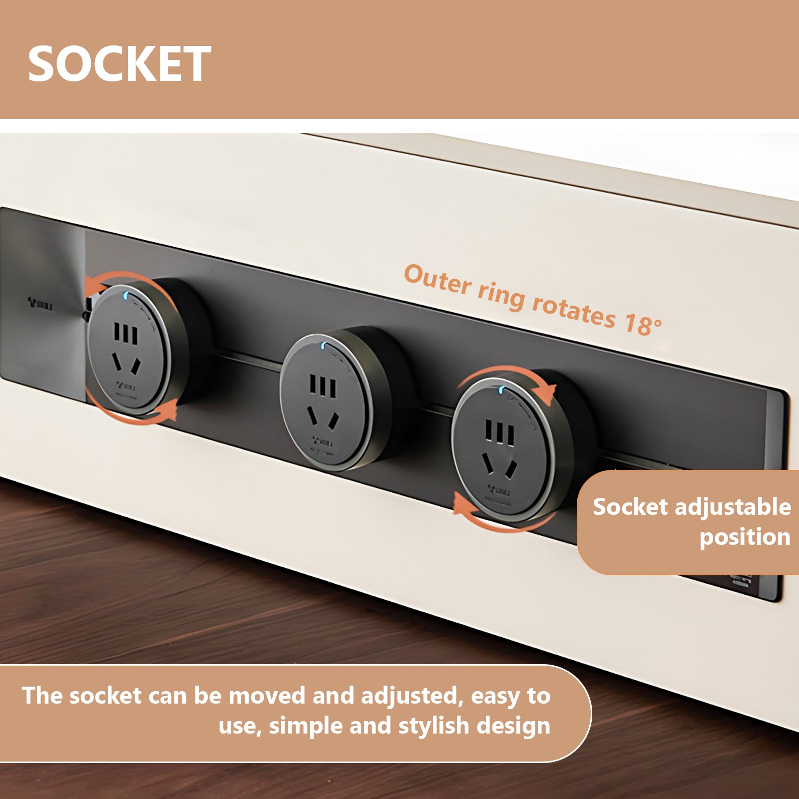 Sliding Rail Socket:It breaks the limitation of the traditional fixed position of the socket, and the position of the socket can be flexibly adjusted through the slide rail, which is convenient for using electrical appliances