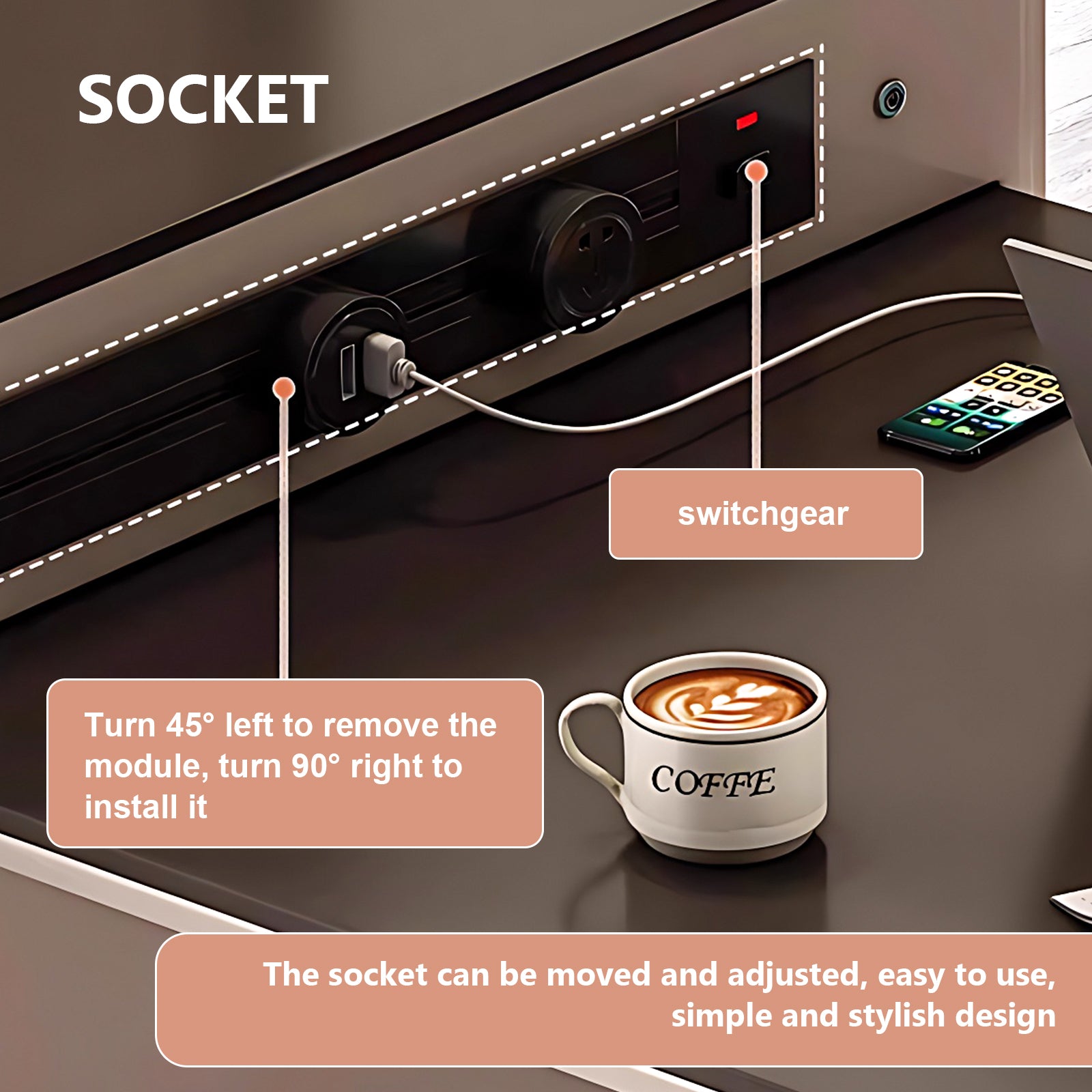 Mobile Rotary Power Socket: equipped with high-power socket; There is a mobile phone charging port, and the office charging lasts for a long time; There is an independent one-button switch, which is safe to use electricity